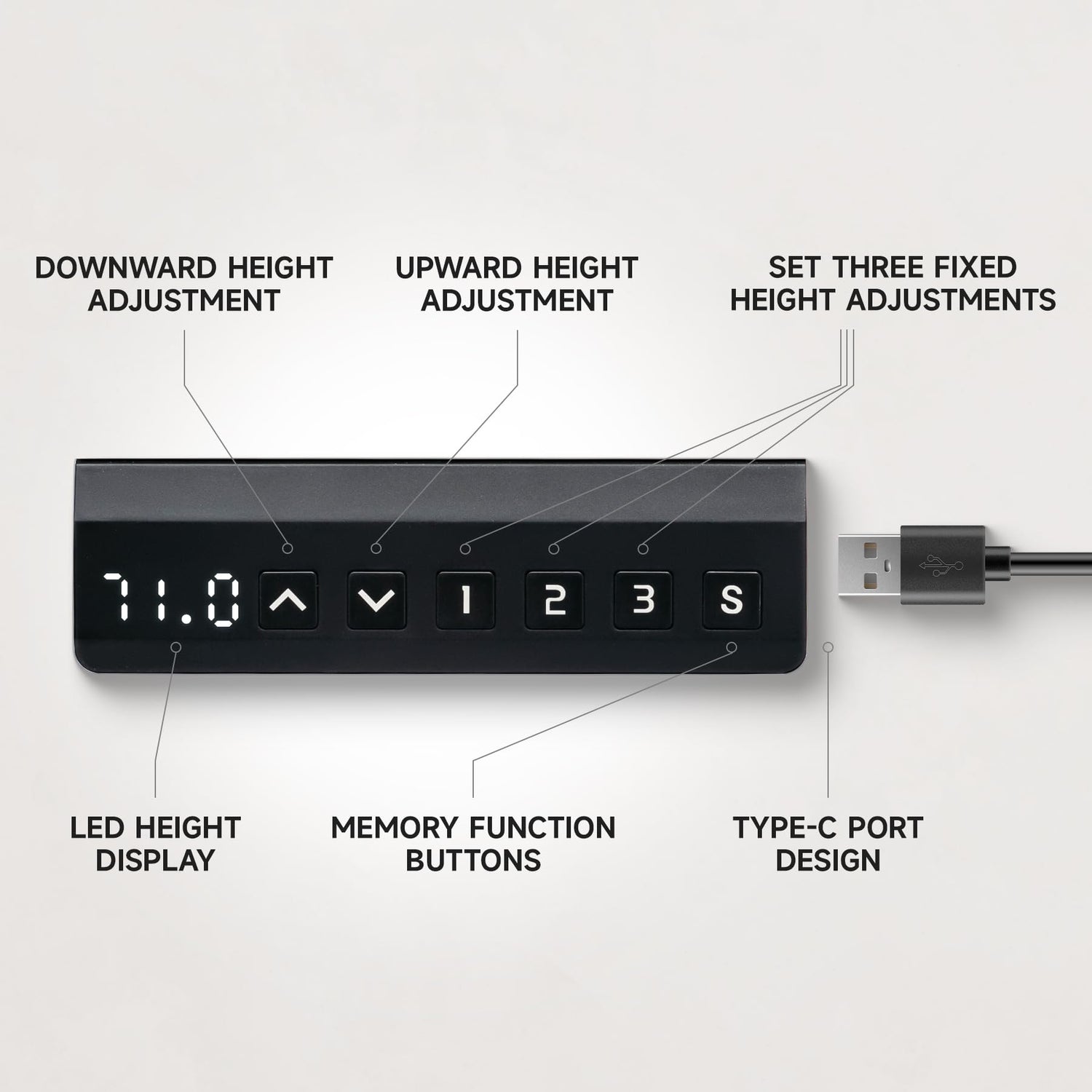- Customizable Ergonomic Design: Versatile controls allow users to customize the height of the desk to suit their personal comfort and ergonomic needs. This adaptability improves user comfort, reduces the risk of posture-related problems, and promotes a healthier, more productive workspace.