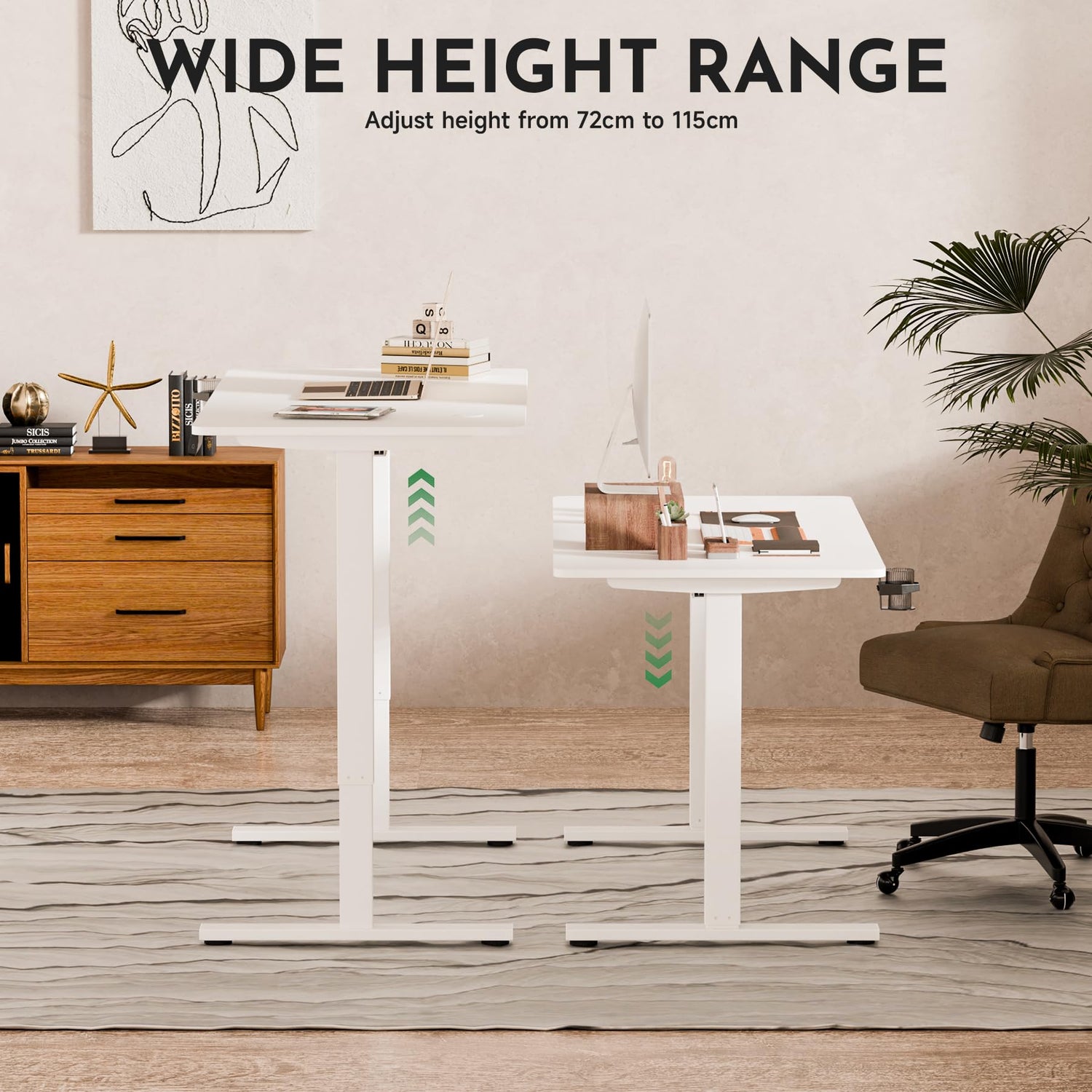 - Single Motor: Powerful single-motor lift system for adjusting height smoothly, evenly and quickly at a speed of 1’’/second with low noise. The quiet and fast movement improves focus and efficiency