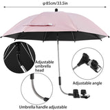 360 UV Protection Waterproof Pram Parasol UPF 50+ UV Protect with Adjustable Clamp and Flexible Arm Umbrella for Pram Stroller Pushchair and Buggy (85cm pink)