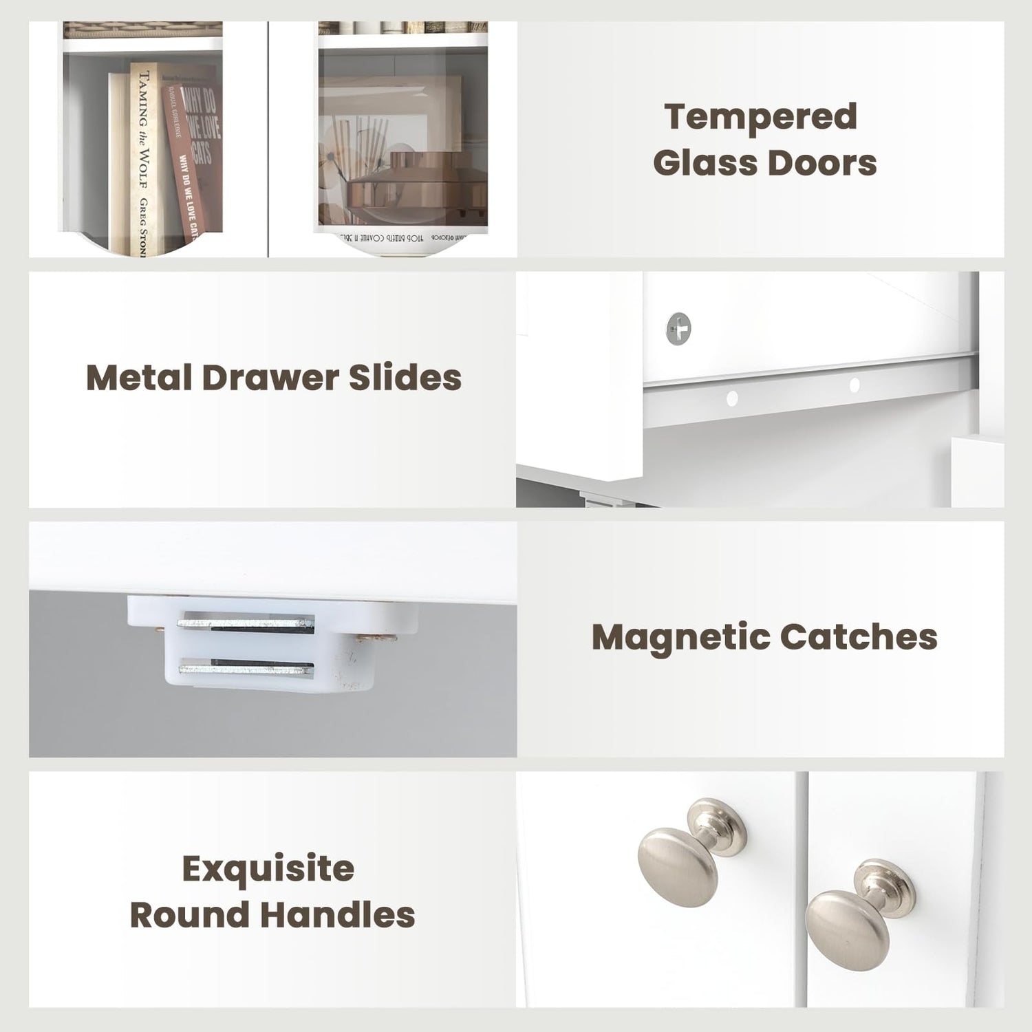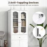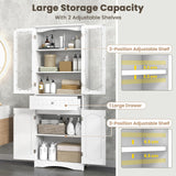 160 cm Tall Bathroom Storage Cabinet, Freestanding Linen Cabinet with 2 Glass Doors, 2 Adjustable Shelves and 1 Drawer, Kitchen Pantry Cabinet or Living Room, Dining Room, Office, White