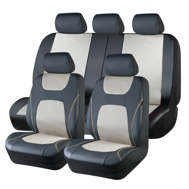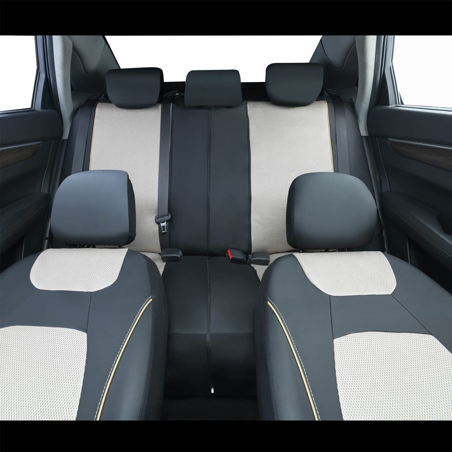 Universal Fit Leather with Spacer Mesh Full Set Car Seat Covers for Car Truck SUV,Airbag Compatible, Zipper Design (Black with Beige)