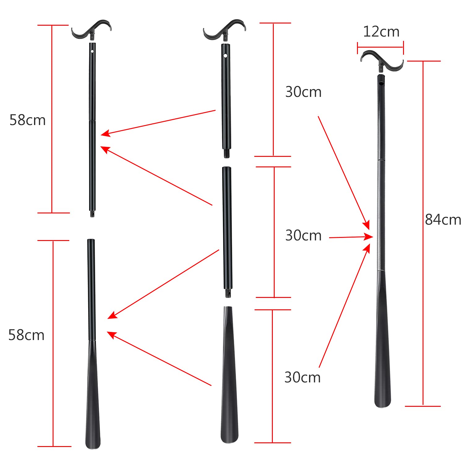 - Easily detaches for travel: Uniquely Design Separating into three short pieces;33inch Long enough; the detachable shoe horn easily fits in a handbag, carry on or tote for use while traveling and for compact storage.