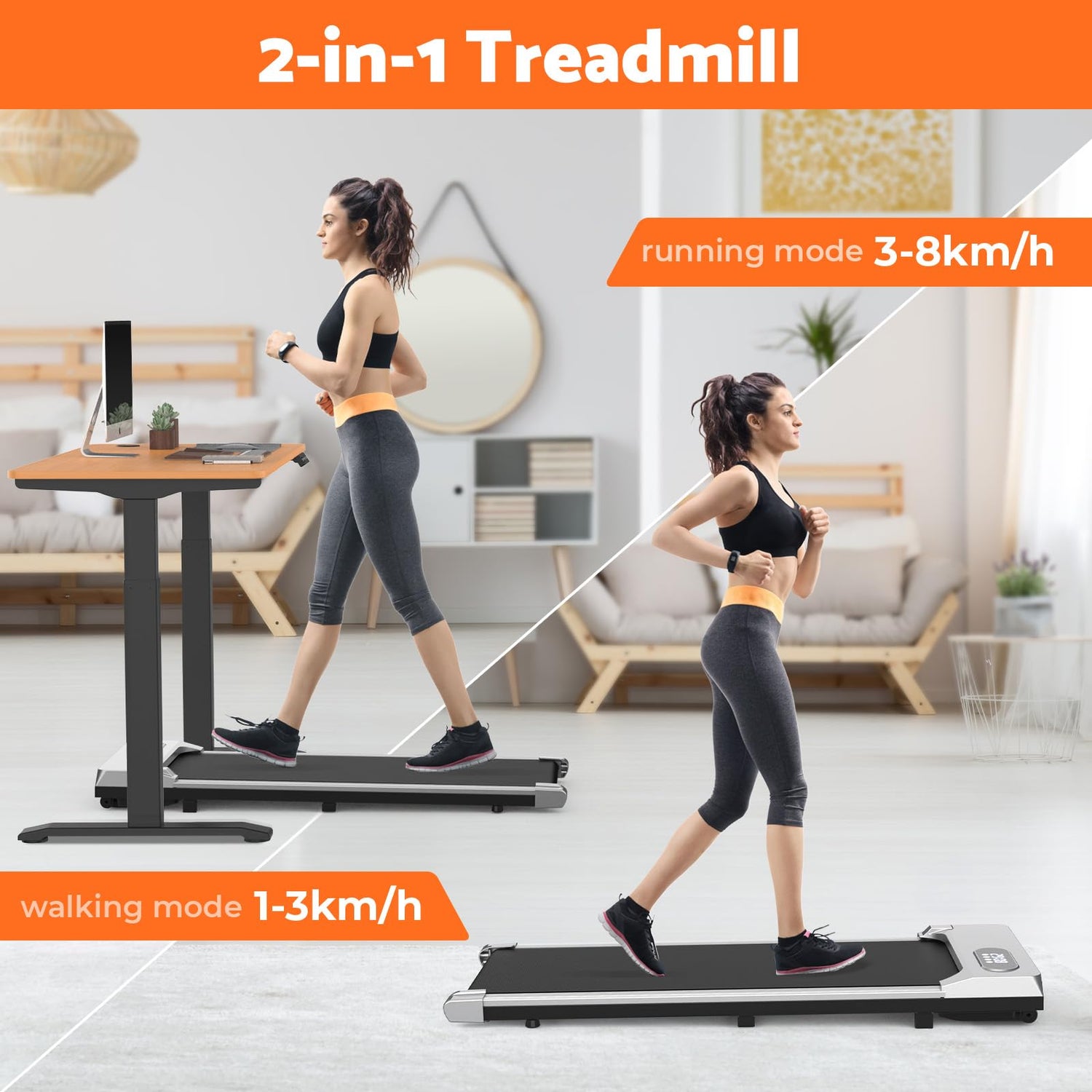 Under Desk Walking Pad Treadmill Home Compact Small Walking Jogging Machine Fitness Equipment, Max 8km/h, 120KG Capacity