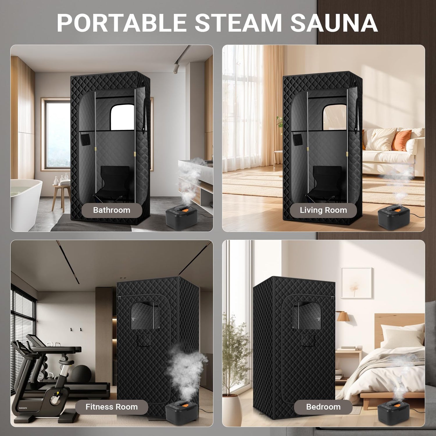 • Fast Heating Technology: With a powerful 1000W steamer and 3L water capacity, this portable sauna reaches temperatures up to 130°F (60°C) in just 10 minutes. Choose from 9 heating levels and set a timer between 10-60 minutes for a customized experience.