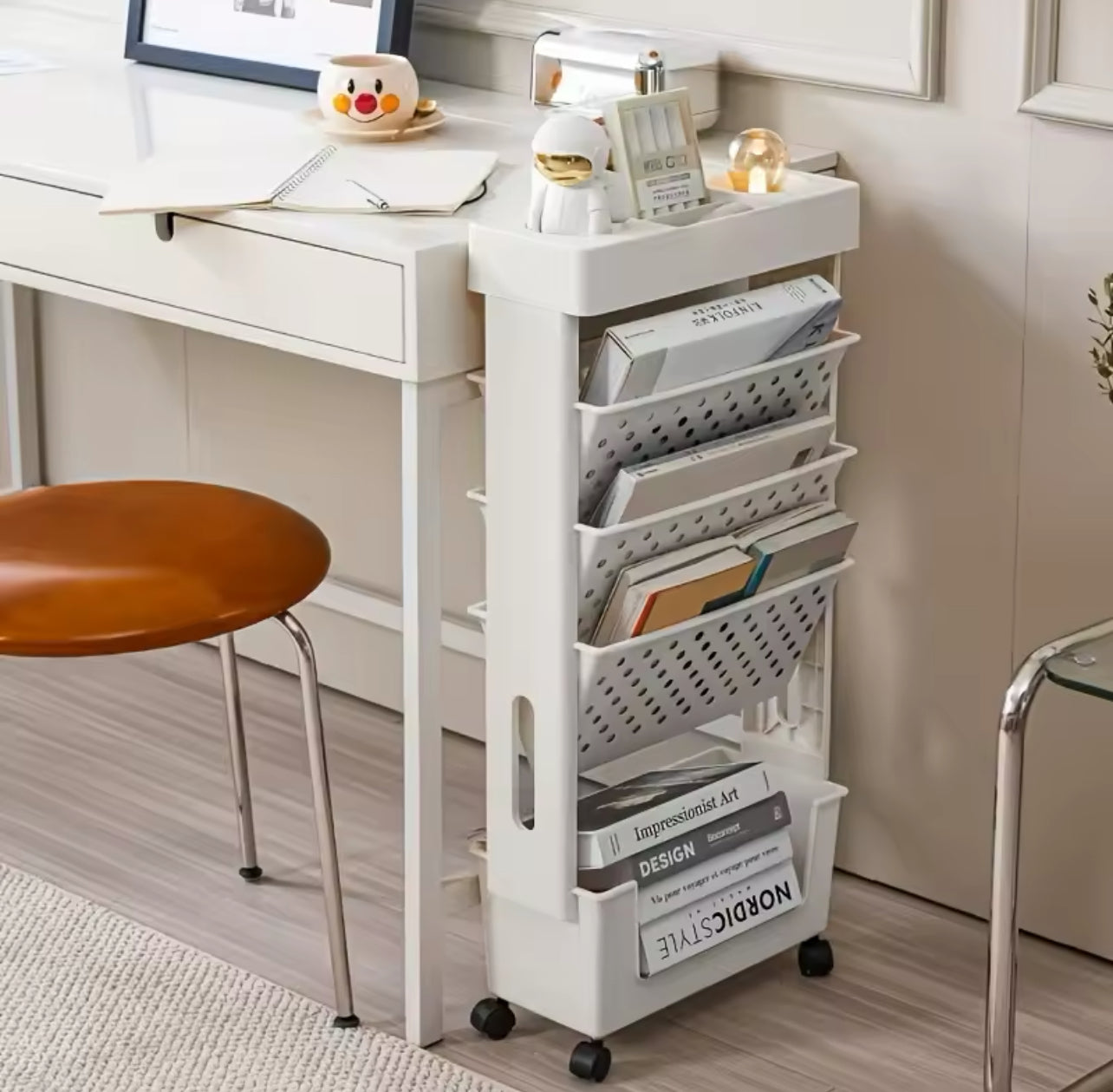 5 Layer Movable Bookcase Organizer Simple Bookcase, for Classroom Office Multi-layer Family Rolling Book Truck, White Durable