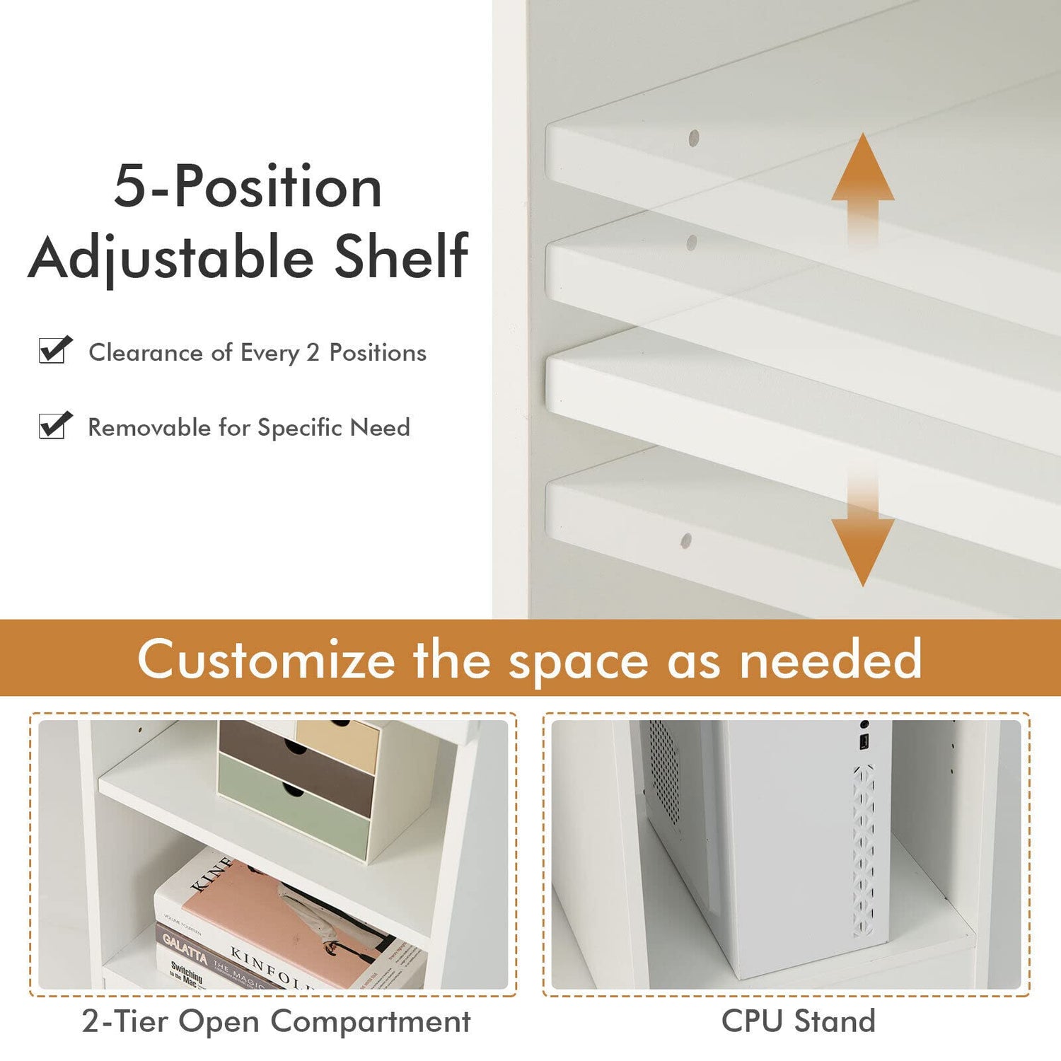 - Practical Adjustable & Removable Shelf: The adjustable shelf is also a genius design. It can be adjusted to 5 positions and there is 3.8 cm between every 2 positions. Therefore, you can customize the space according to your needs. Moreover, the shelf can be removed, which allows you to make the bottom shelf a CPU stand for convenience.