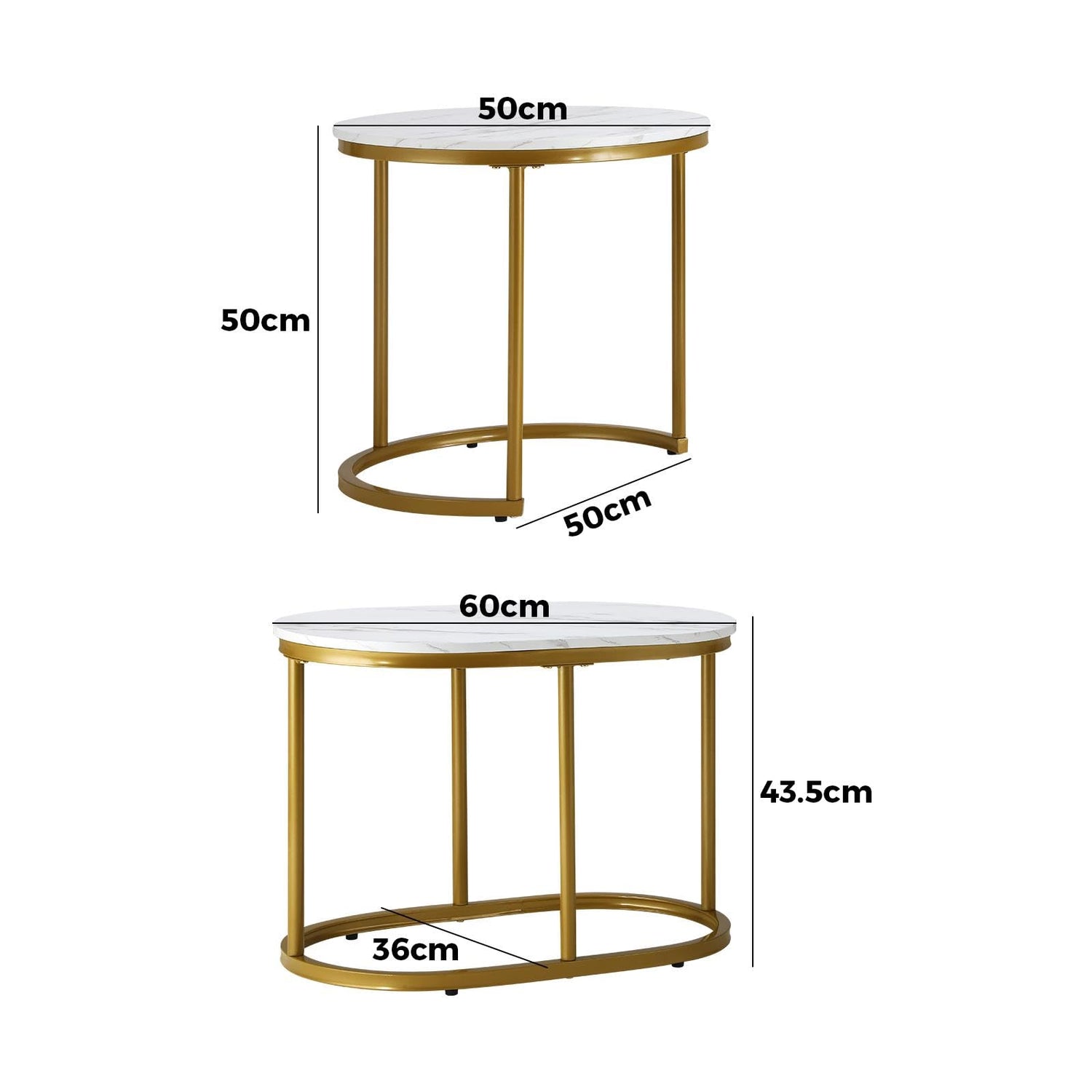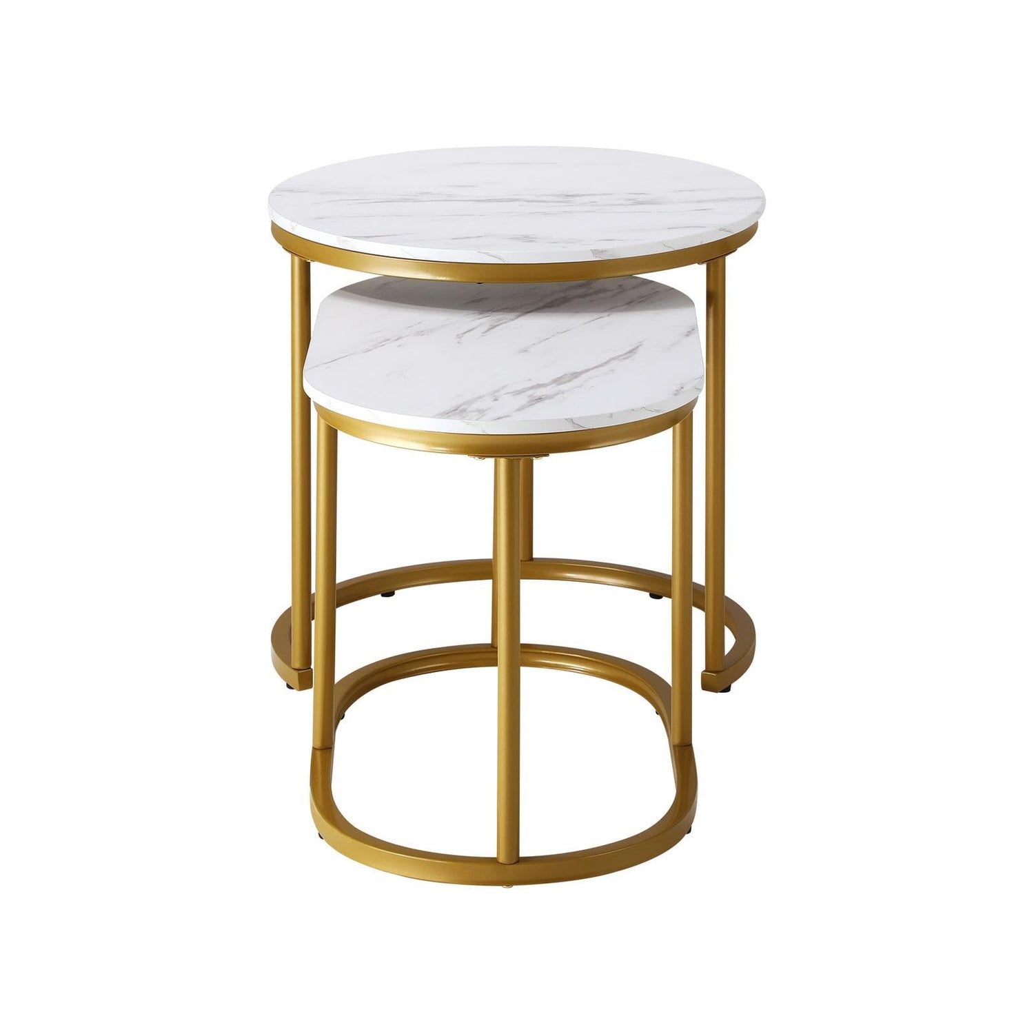 Set of 2 Coffee Table Round Marble Nesting Table Side End Table White and Gold