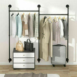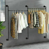 XL Industrial Wall Pipe Rack Commercial Clothes Hanging Rail Organizer 2 Way Use