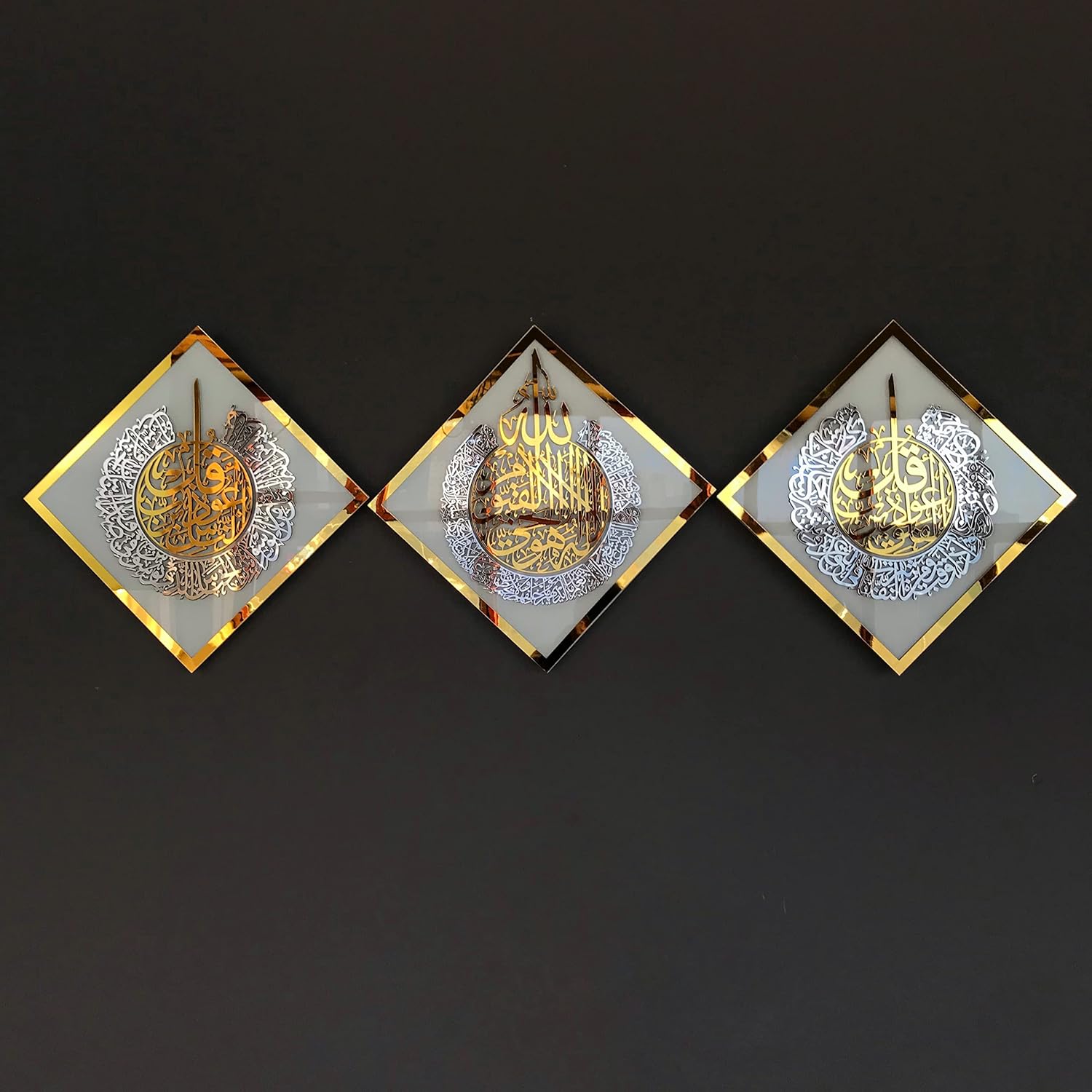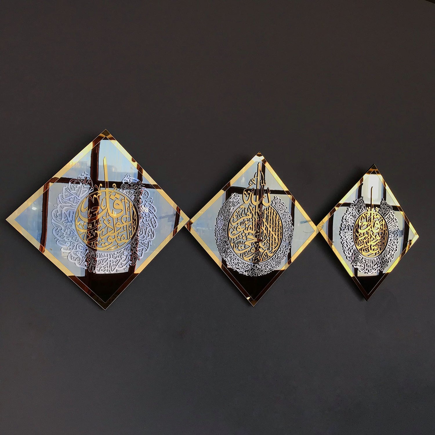 Tempered Glass Set of Ayatul Kursi, Surah Al Falaq and Surah An Nas Islamic Wall Art, Ramadan Decoration, Eid Gift, Muslim Home Decor, Islamic Calligraphy