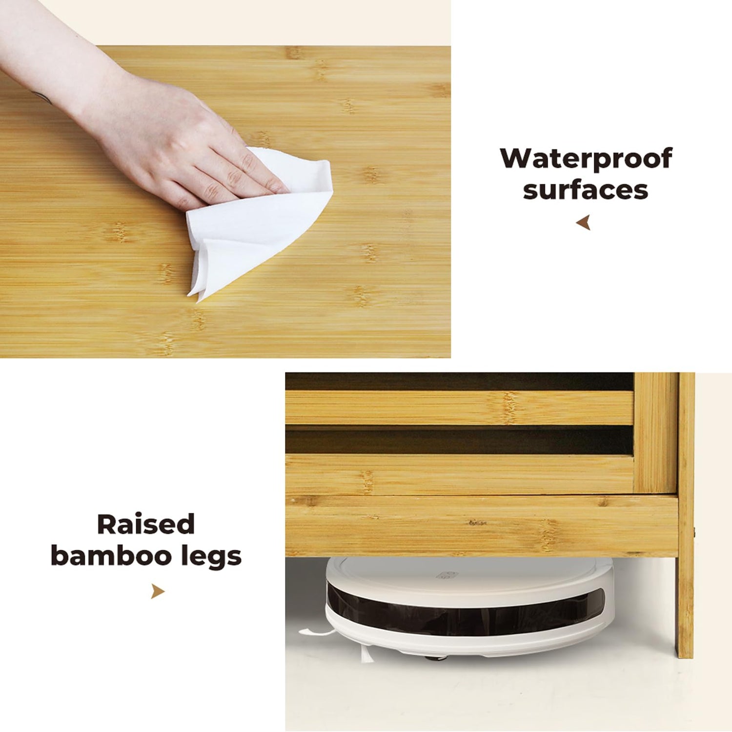 - Stable and durable: This storage cabinet is made of 102% natural bamboo material, non-toxic, eco-friendly with waterproof painting which is durable, sturdy and strong.