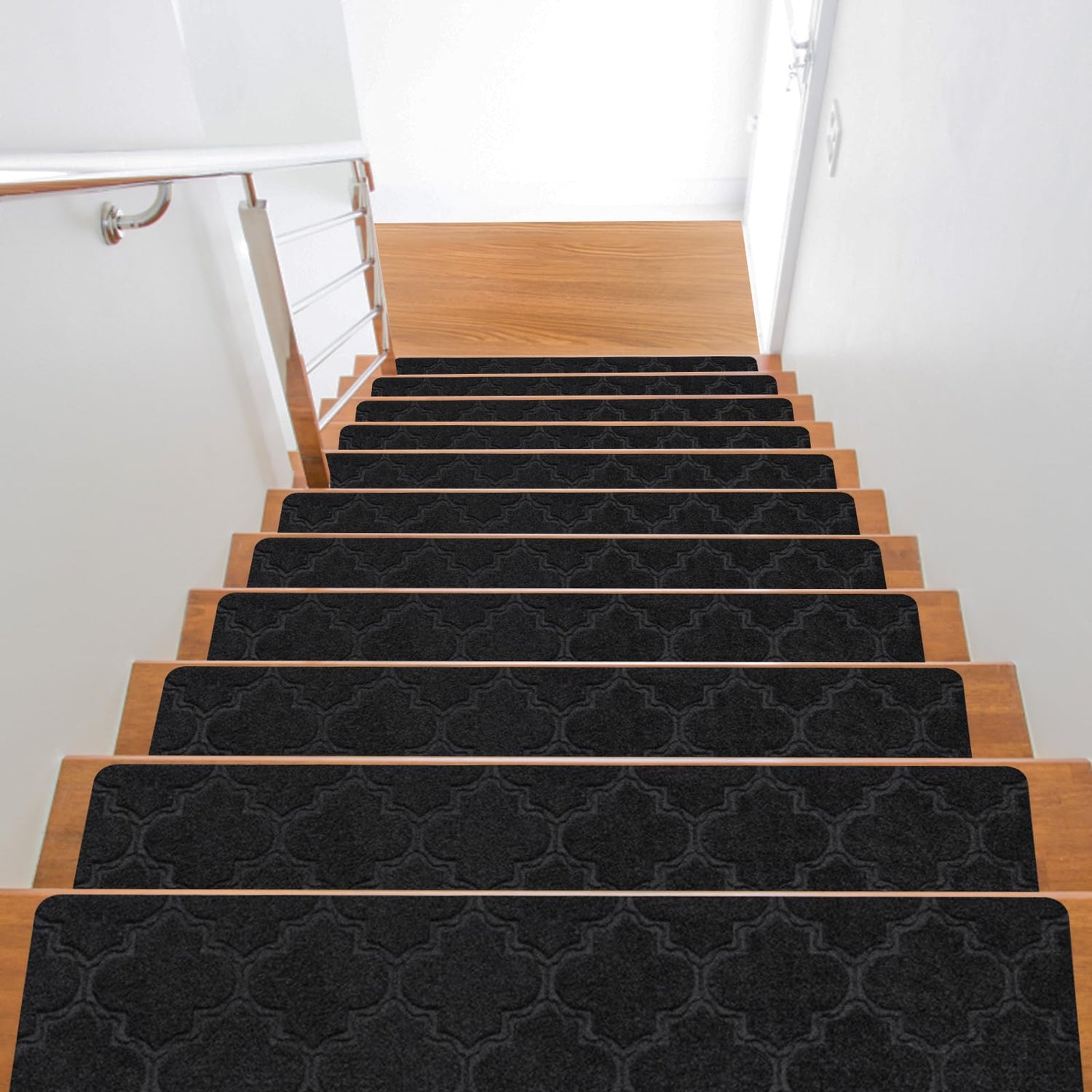 Non-Slip,15-Pack(30"*8"), Stair Runner Rug for Wooden Steps Indoor, Safe Soft Stair Carpet for Kids Elders, Dogs, Adhesive adsorption Increased Friction Grip (Black)
