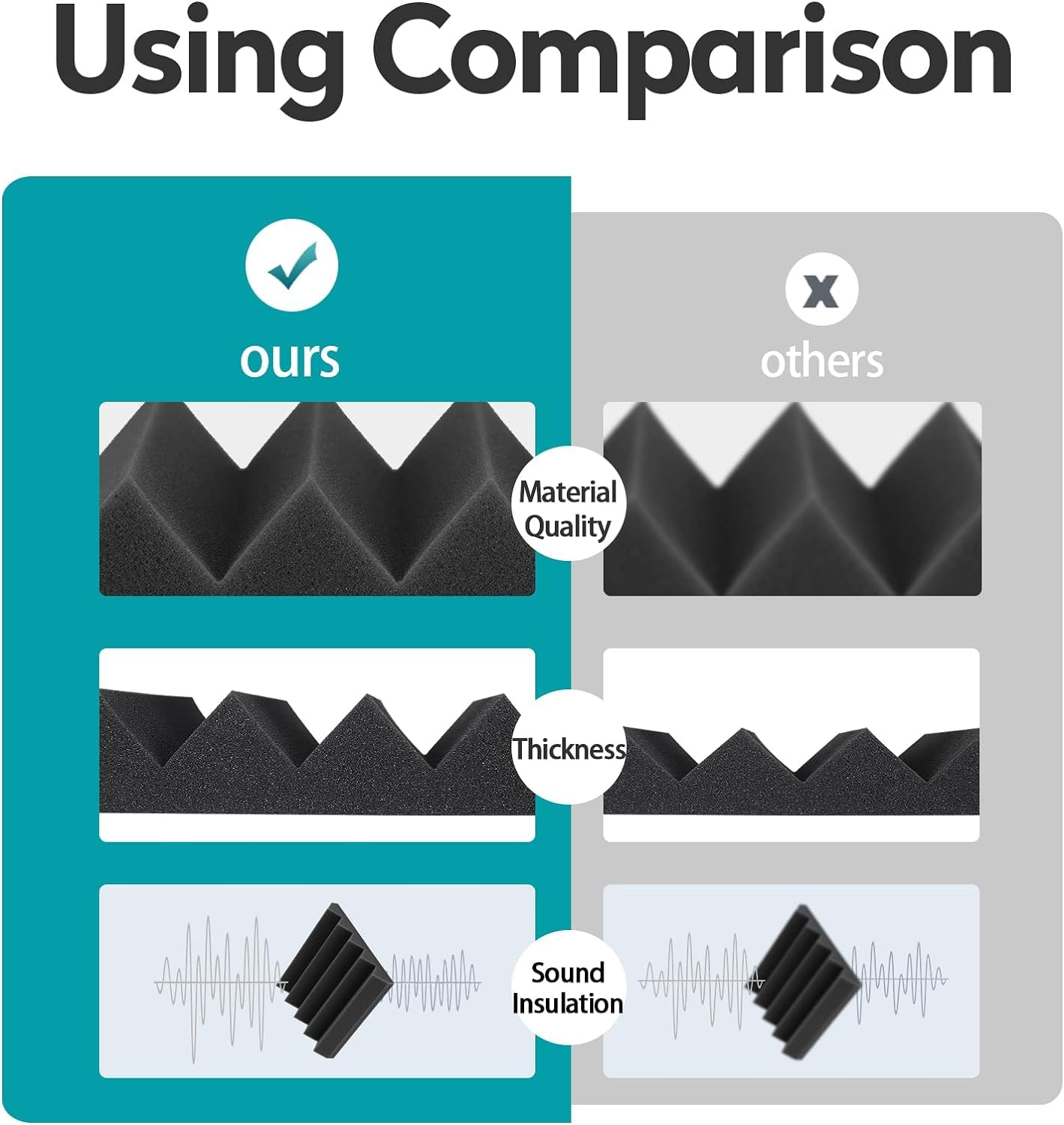 • Unique Wedge Design: Our unique sound panel wedge design maximizes the contact area with sound to create an optimal acoustic environment.Our foam panels excel at absorbing and eliminating unwanted echoes, flutter echoes, standing waves, and reverb.