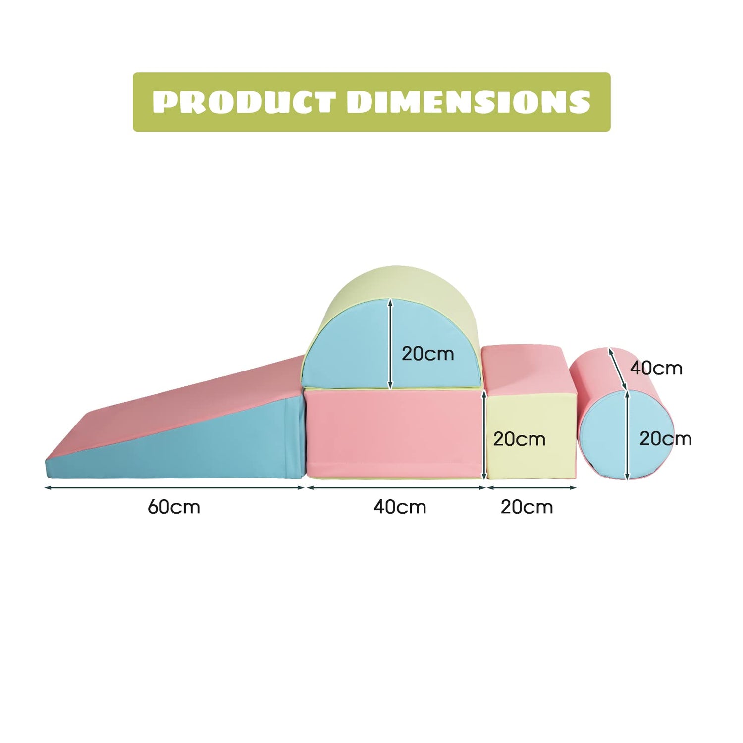 Kids Crawl & Climb Foam Play Set, 5-Piece Kids Foam Block Interactive Playset for Climbing, Crawling, Sliding, Lightweight Foam Shapes for Toddlers in Home, Kindergarten, Playroom (Pink)