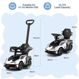 Lamborghini Licensed Push Cars for Toddlers 1-3, 3 in 1 Stroller Sliding Walking Car w/Handle, Armrest Guardrail, Underneath Storage, Horn, Foot-to-Floor Ride On Toy for Boys Girls (White)