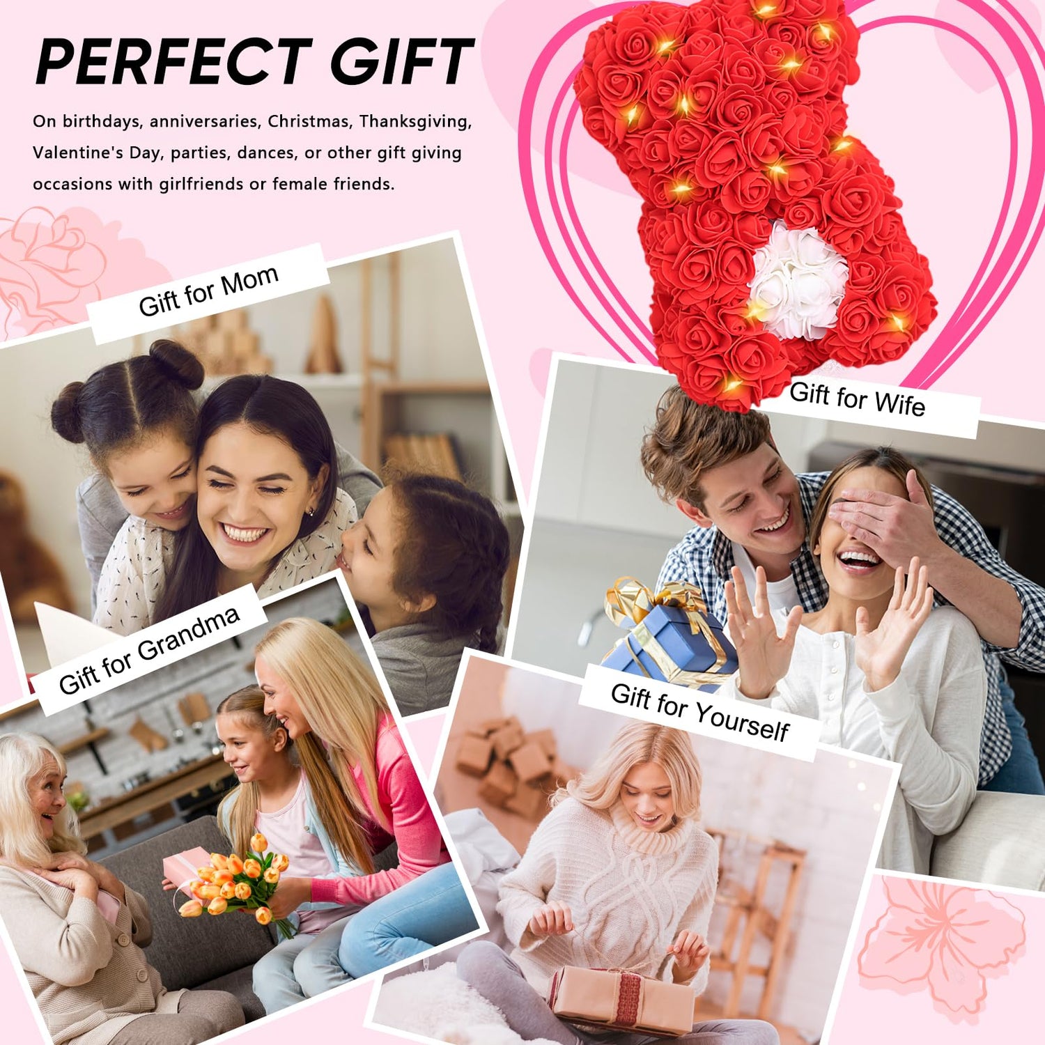 Rose Bear,Gifts for Mothers Day from Daughter Son, Artificial Flower Bear, Valentines Decorations, Gifts for Grandma, Mom, Mother's Day, Birthday, Anniversary