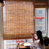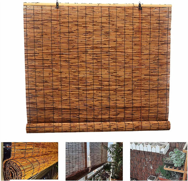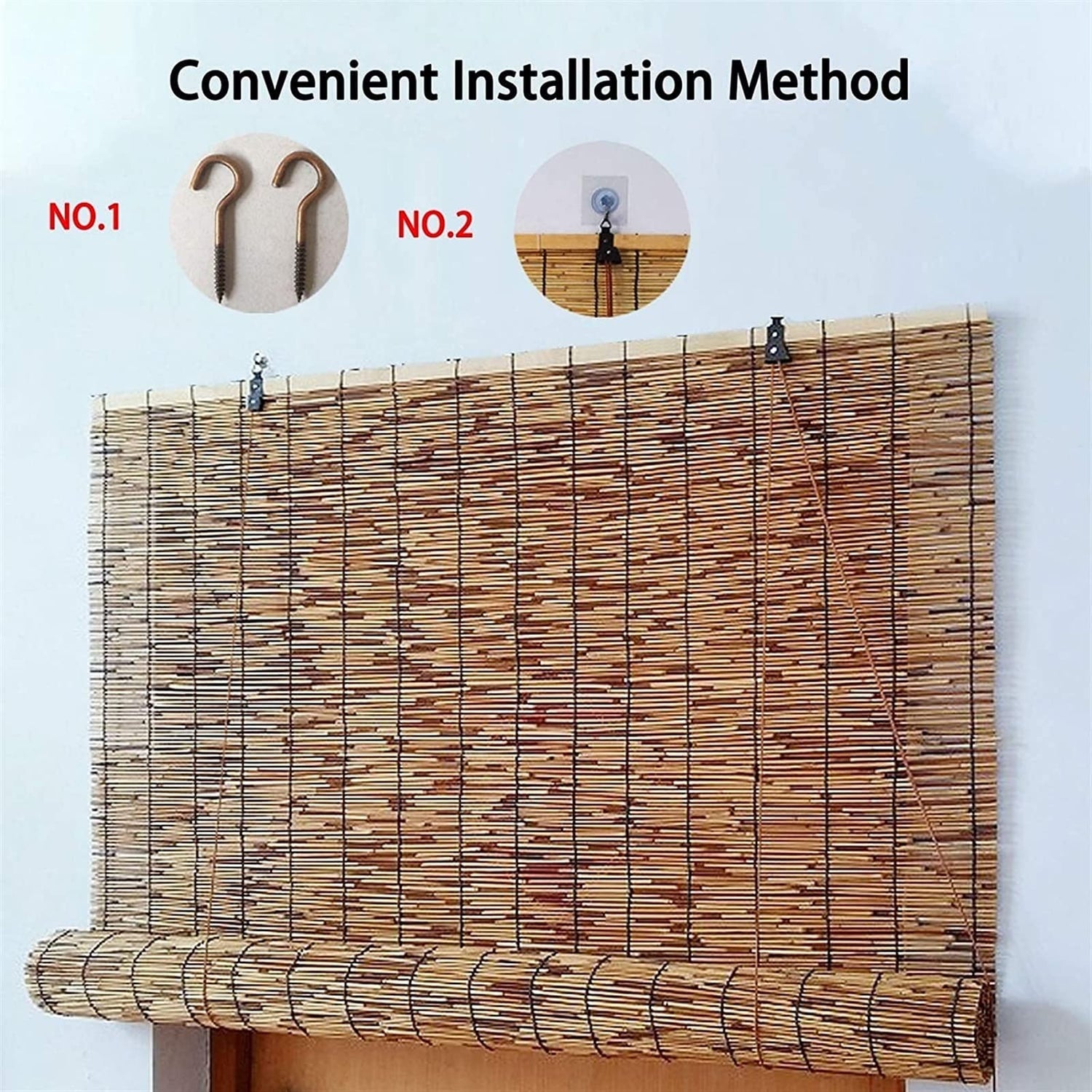 Natural Reed Curtain with Lifter, Bamboo Blind for Outdoor and Indoor, Bamboo Roller Blinds, Shades-Reed Curtain, Patio Shade Lifting Shutters