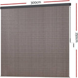 Outdoor Blinds, 3 x 2.5m PVC Roller Blind Window Retractable Awning Sun Shade Balcony Privacy Screen Sunscreen Indoor Bedroom Kitchen Garden Patio, 185GSM Knit Fabric Brown