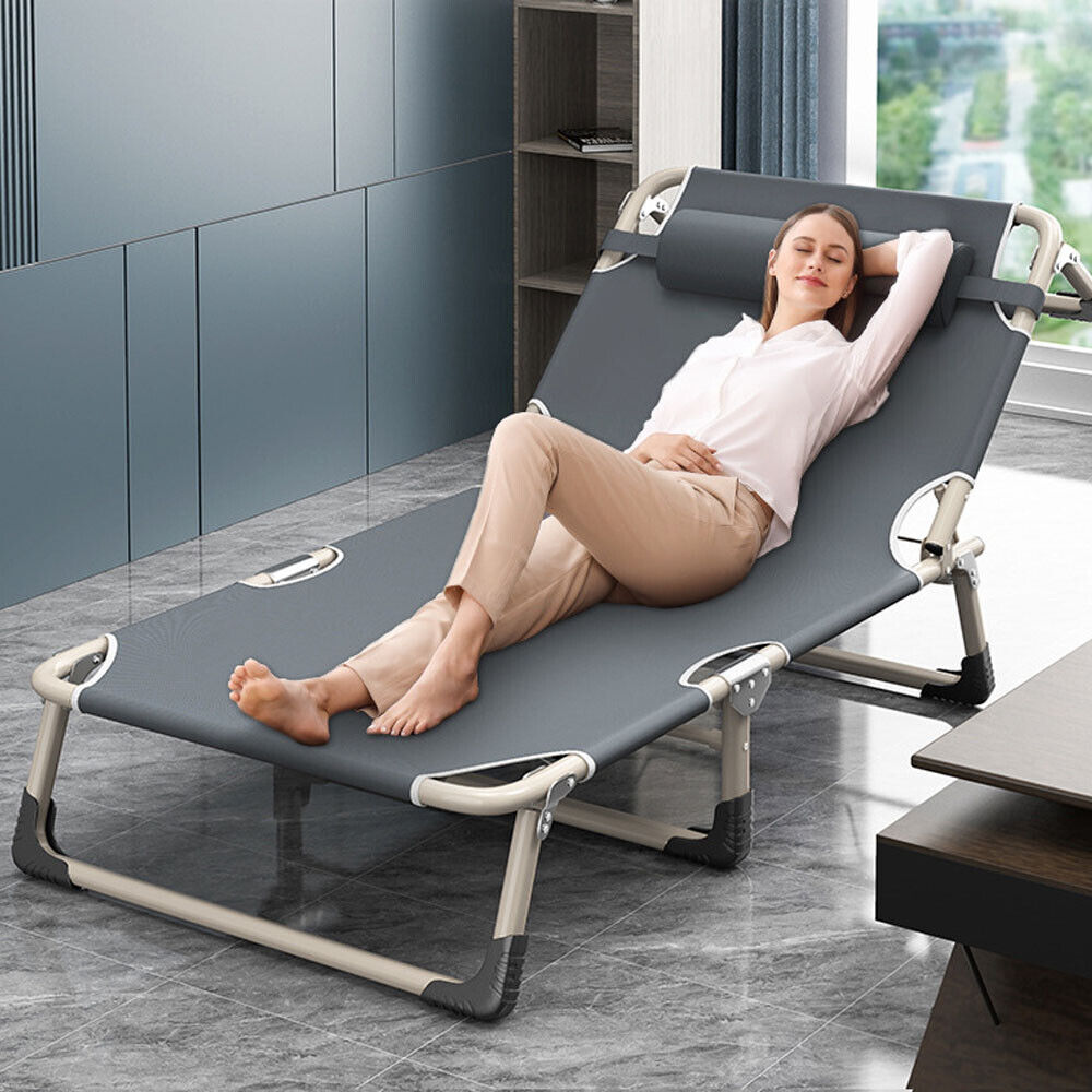 This Adjustable folding cot sturdy lounge chair is designed with 4 positions adjustable locking system, which allows you to adjust it to a comfortable position according to your needs. You can recline or lay flat. Our folding Adjustable cot with mattress beach lounger is designed with anti-slip feet pads to ensure stability.