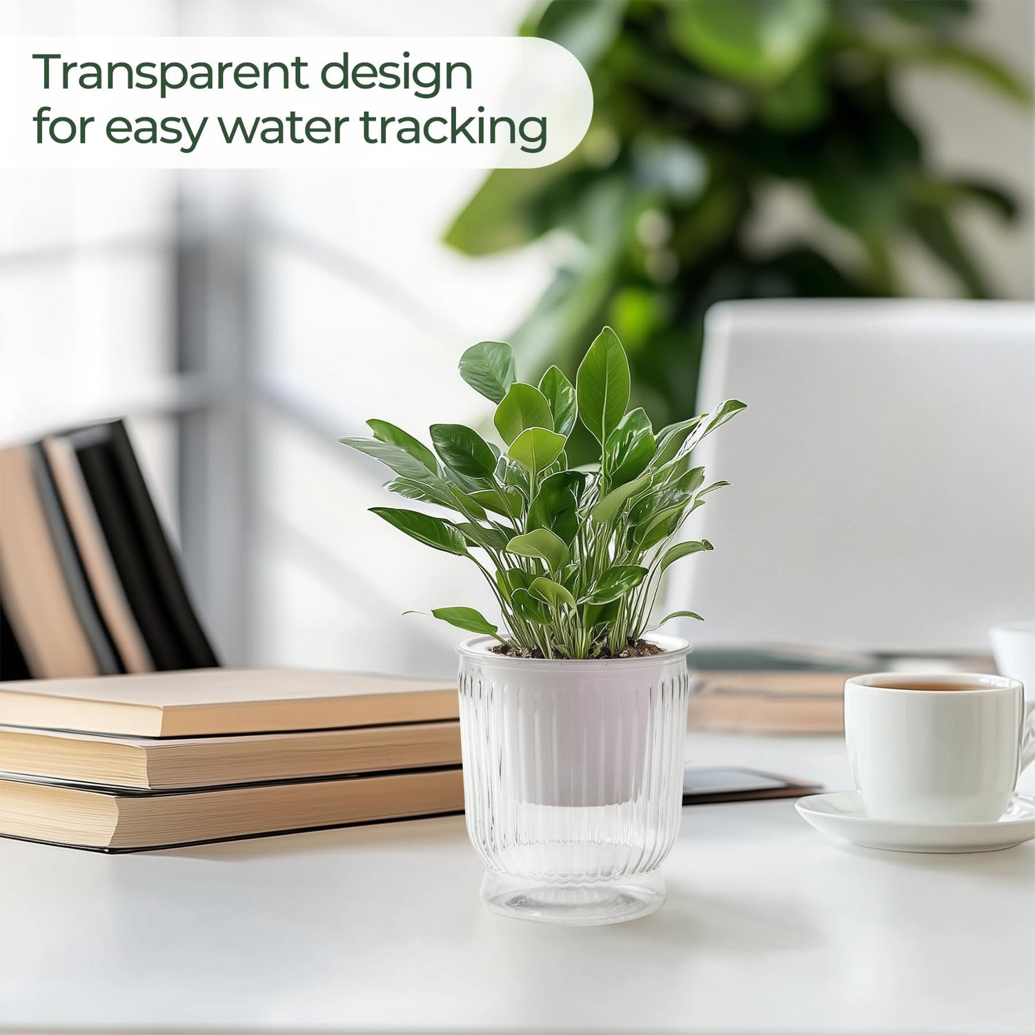 T4U Self Watering Plant Pots, 4 Inch Small Plant Pots, Self Watering Planter with Deep Reservoir, Plastic Flower Pots for All House Plants, Flowers, African Violets, 4 Pack,Transparent