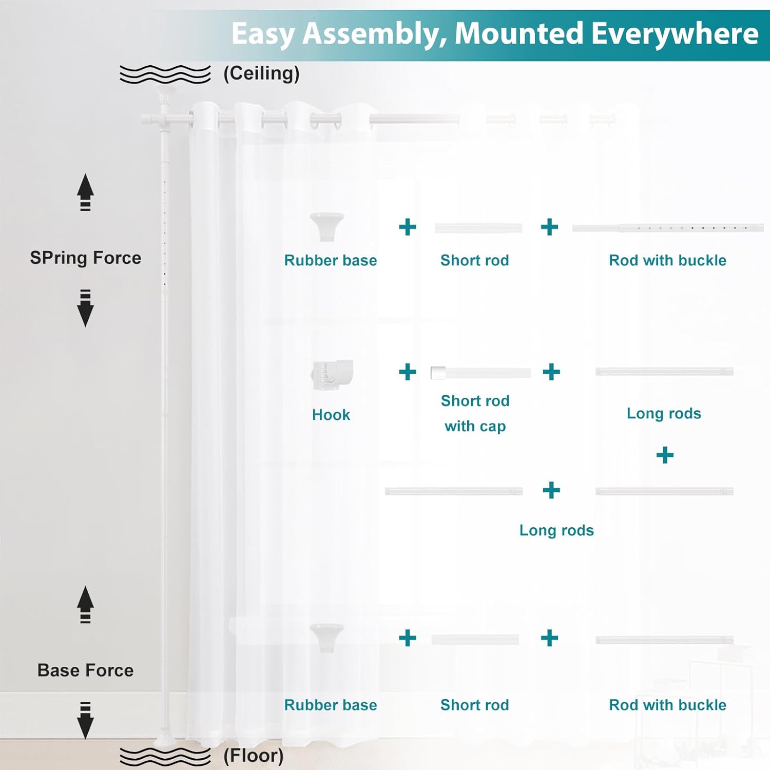 - Damage-Free Room Separation: Our floor to ceiling curtain rod is designed to work seamlessly with your room divider curtains without requiring any drilling or permanent installation. Perfect for apartments or temporary partitions, this room divider curtain rod offers an ideal solution for those who want to avoid damaging their walls while still enjoying the benefits of a room divider