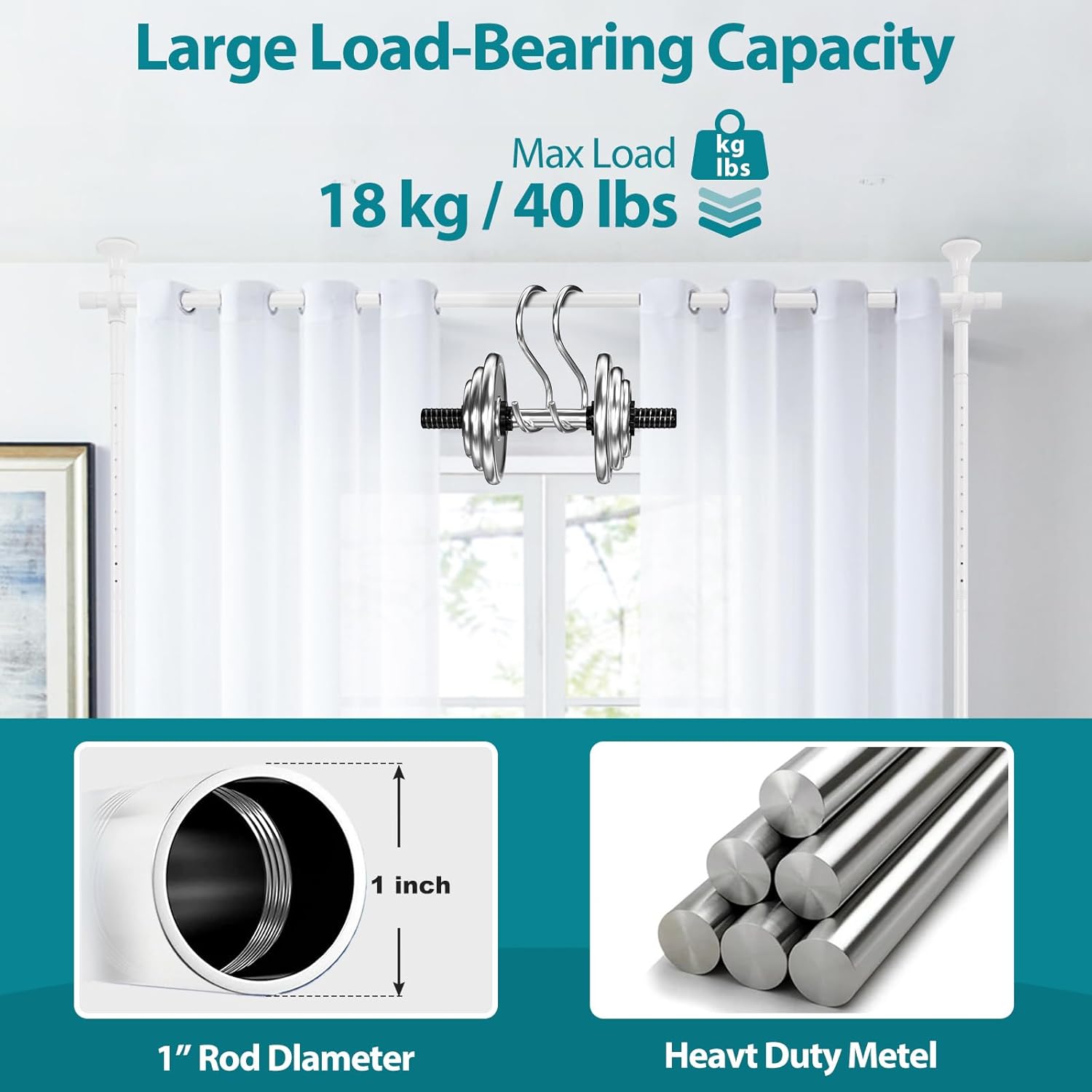 - Heavy Duty Tension Rod Stand: Constructed with a 1-inch rod diameter and 0.8mm rod thickness, our room divider curtain rod is made of high-quality steel. It is strong enough to support even the heaviest curtains up to 40 lbs, making it perfect for blackout drapes