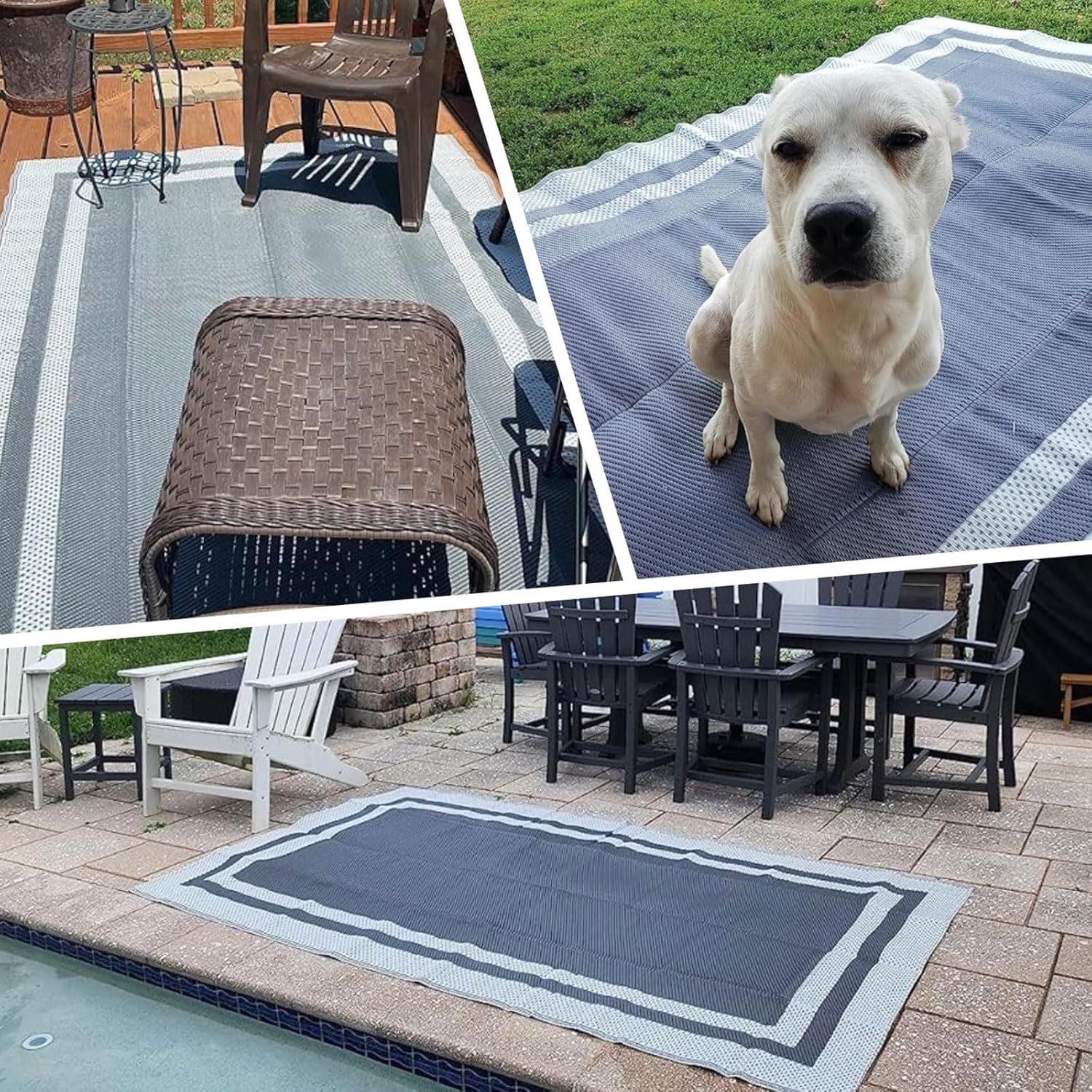 Outdoor Rug Reversible Portable Plastic Straw Camping Rugs for Outside RV, Patio,Picnic,Camper,Balcony,Porch (Grey and White B, 152 x 244 CM (5 * 8FT))
