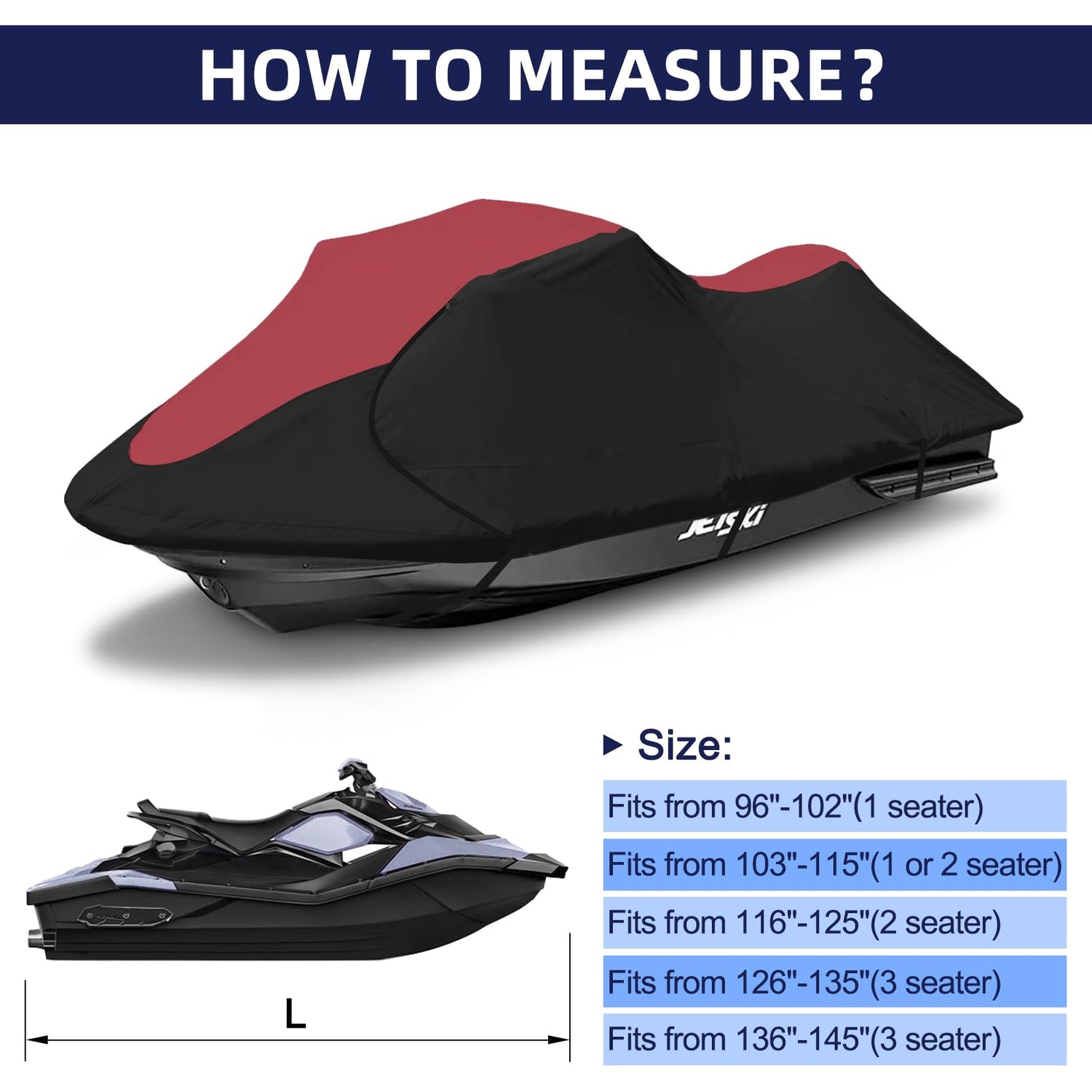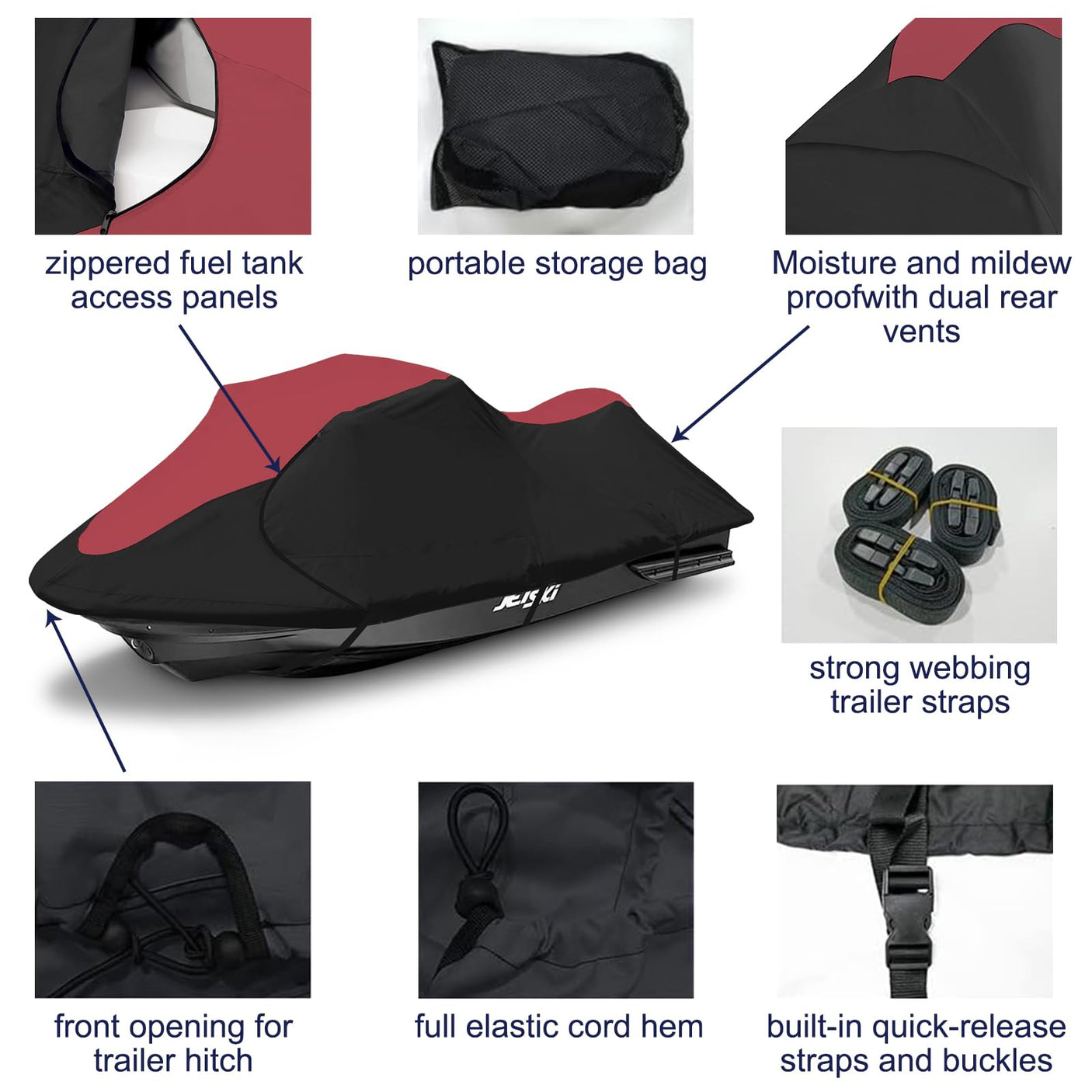 600D Jet Ski Cover - Trailerable Seadoo Cover, Waterproof Jetski Cover, PWC Cover Fits Seadoo, Yamaha, Kawasaki, Jet Ski Watercraft Cover Fits from 116"-125" (2 Seater), Red & Black - Red & black / 116"-125"( 2 Seater) is backordered and will ship as soon as it is back in stock.