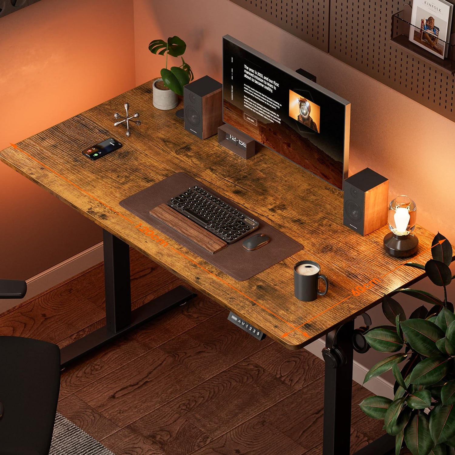 Electric Standing Desk, Height Adjustable Sit Stand Desk with Hooks for Home Office, Metal Frame Stand up Desk with Powerful Motor, Ergonomic Computer Desk for Home Office 120×60CM(Brown) is backordered and will ship as soon as it is back in stock.