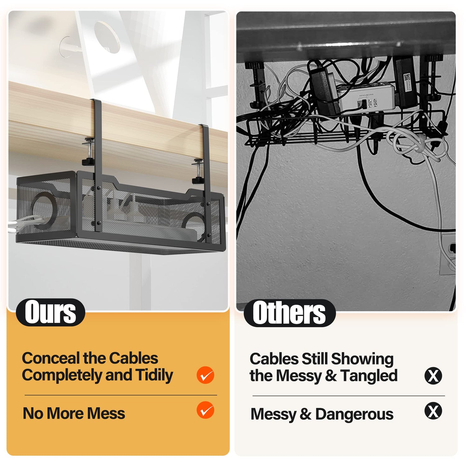 - Save Storage Space - No more mess. No more hanging or tangled wires. Giving you a total wire management under desk. Organizes any data cables, power cords, outlet strips off the floor. You can hide wires from your feet to keep your desks and floors clean and tidy.