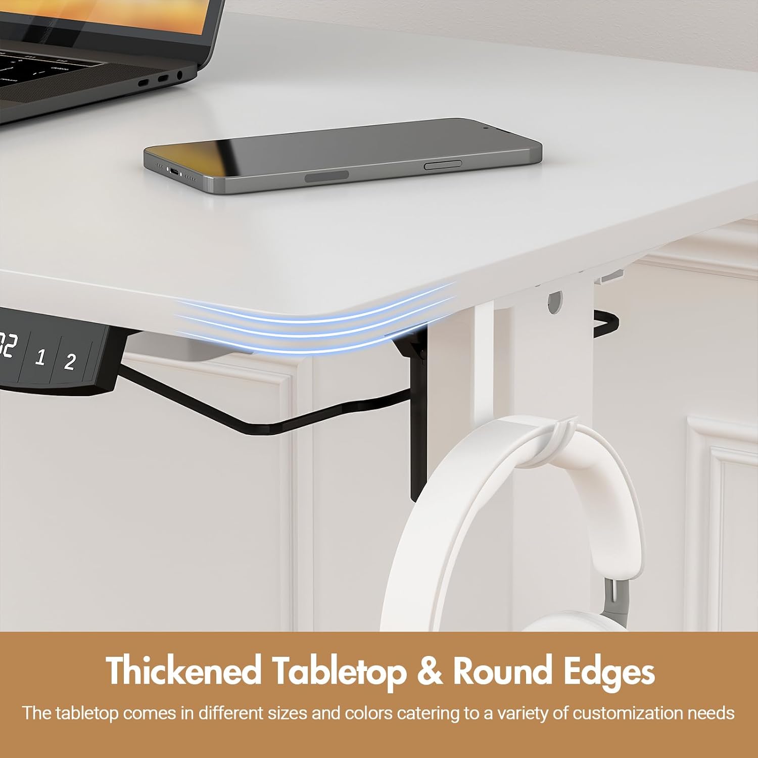 Electric Standing Desk, Height Adjustable Ergonomic Sit Stand Desks with Hanging Hooks and Cable Management, 100 x 55 cm Whole Piece Desktop, for Small Space, White Frame + White Desktop is backordered and will ship as soon as it is back in stock.