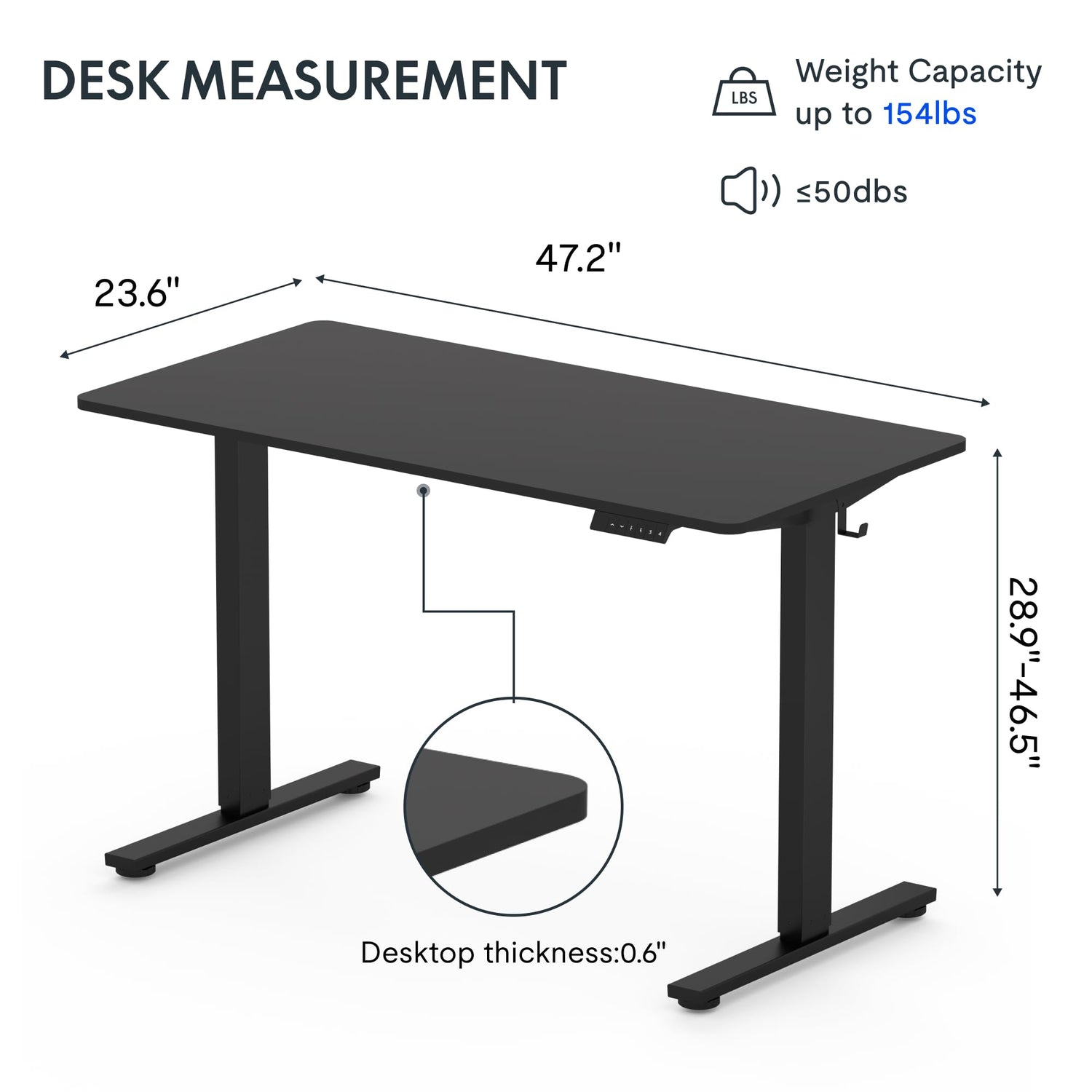 - ELECTRIC HEIGHT ADJUSTABLE SYSTEM: The motor lift mechanism offers smoother height adjustments from 71cm to 121cm, at a speed of 1"/second with low noise(under 50 dbs) while running. Each desk leg go through 20,000 lift tests.