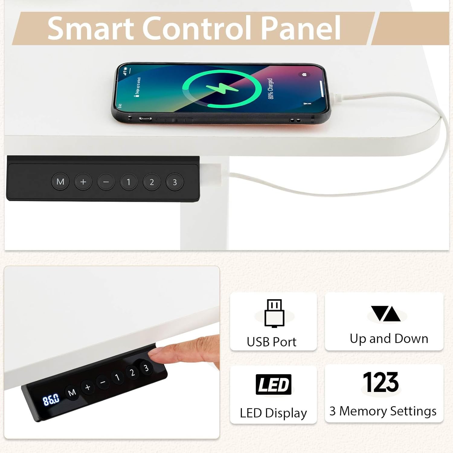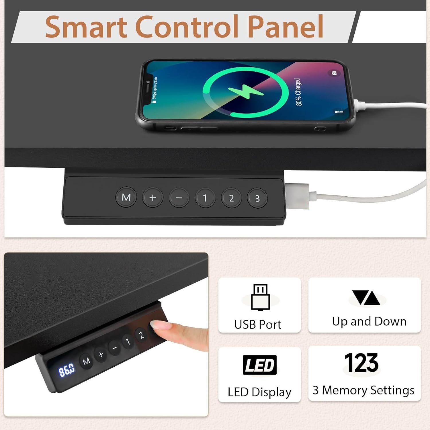 - Smooth Lifting & Easy Control: The powerful motor makes the lifting process smooth and quiet to avoid disturbing others. There are 3 preset buttons on the smart control panel to memorize desk heights for instant adjustment. Moreover, an additional USB port keeps your phone at full charge.