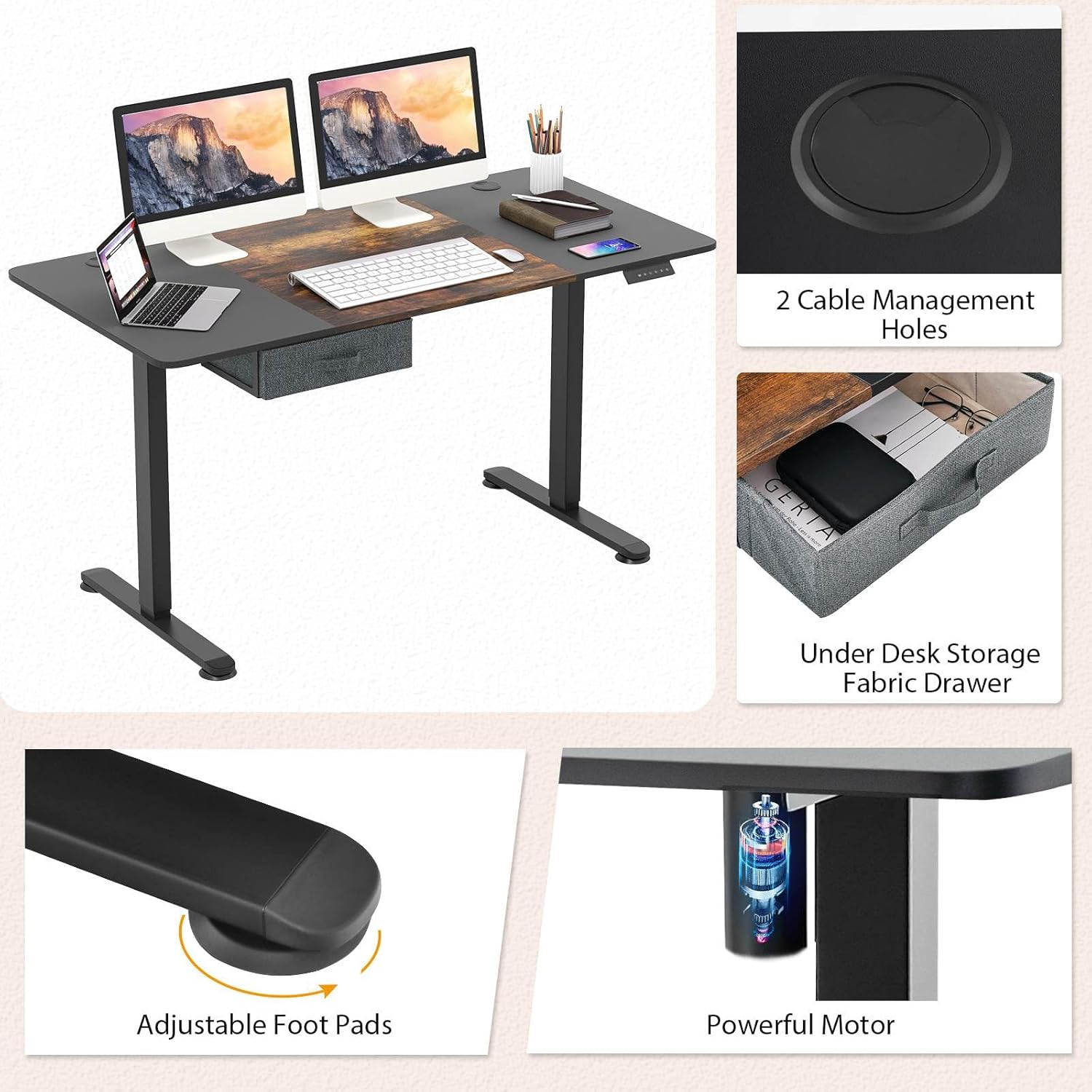 - Anti-collision Design & Convenient Use: The anti-collision rebound design effectively avoids injuries and damage if there is an obstacle when the desk goes up and down. The under-desk storage fabric drawer also releases you from the trouble of messy small stuff.