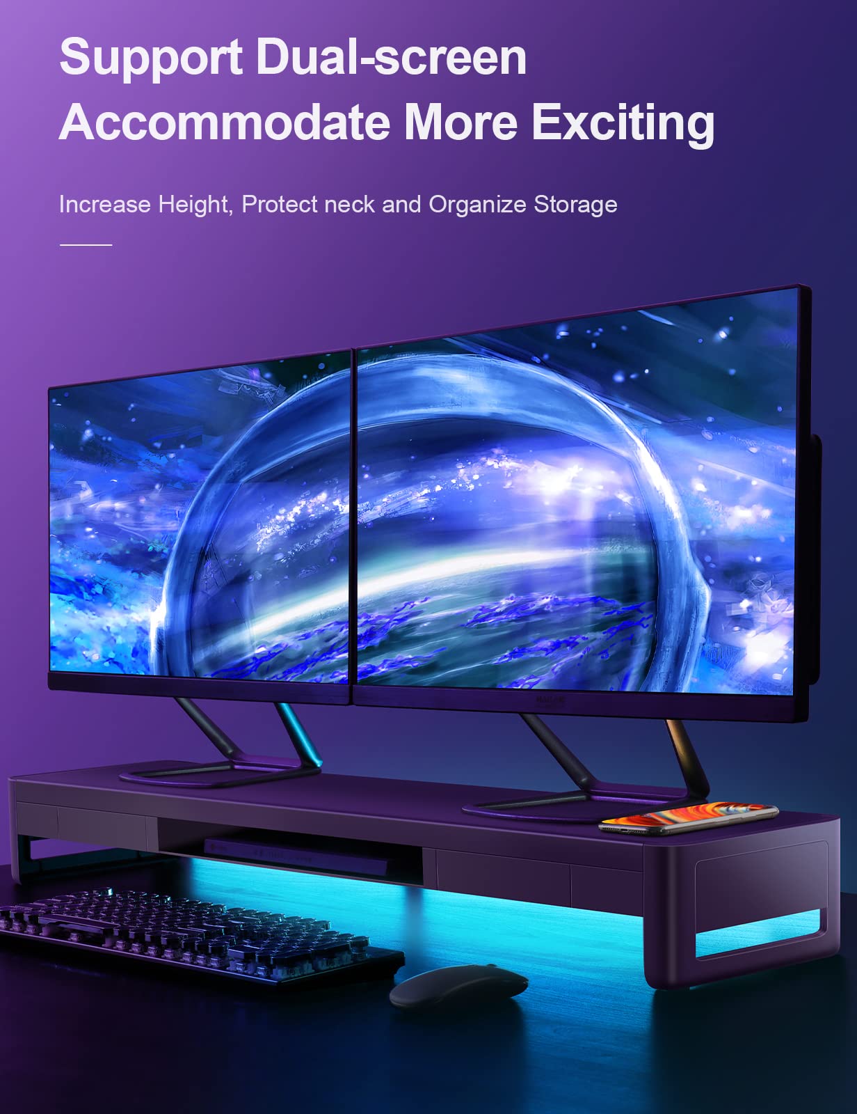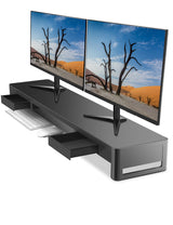Dual Monitor Stand with 2 Storage Drawers, Metal Computer Monitor Stand, Monitor Shelf with Extendable Drawer, Keyboard and Mouse Storage, Desktop Organizer is backordered and will ship as soon as it is back in stock.
