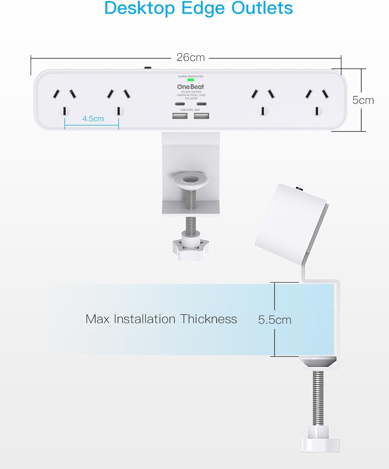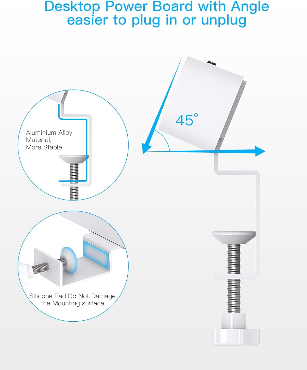 - Clamp Desktop Edge Outlets: Easy installation. No drill and screws required.1.5m desk power strip could be freely mounted and removed conveniently, just screw tight the clamp holder. A suitable range of clamping thickness: 5.5cm max, Foam pads on the desk clamp protect the desk surface from scratches and scuffs.