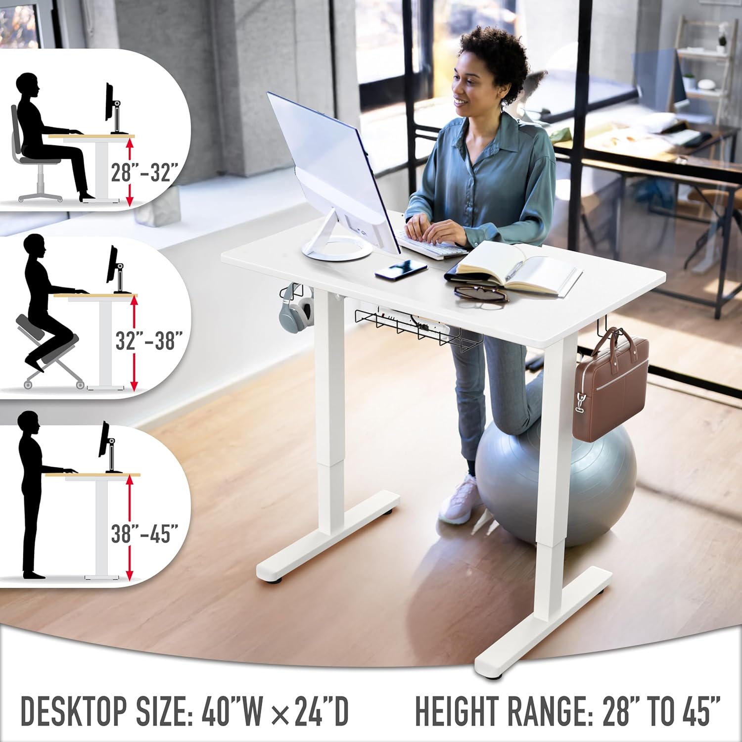 Electric Standing Desk, Whole Piece Desktop Height Adjustable Sit to Stand Desk with Hanging Hooks and Cable Management, White Frame with White Top 100 x 55 cm - Maple is backordered and will ship as soon as it is back in stock.