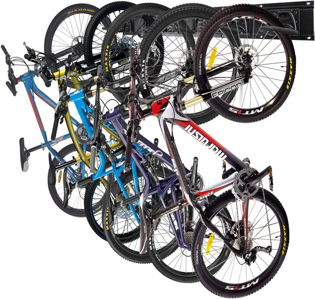 Bike Storage Rack, 6 Bike Racks and 6 Helmets Hooks, Wall Mounted Bike Storage Rack, Max capacity 600lbs