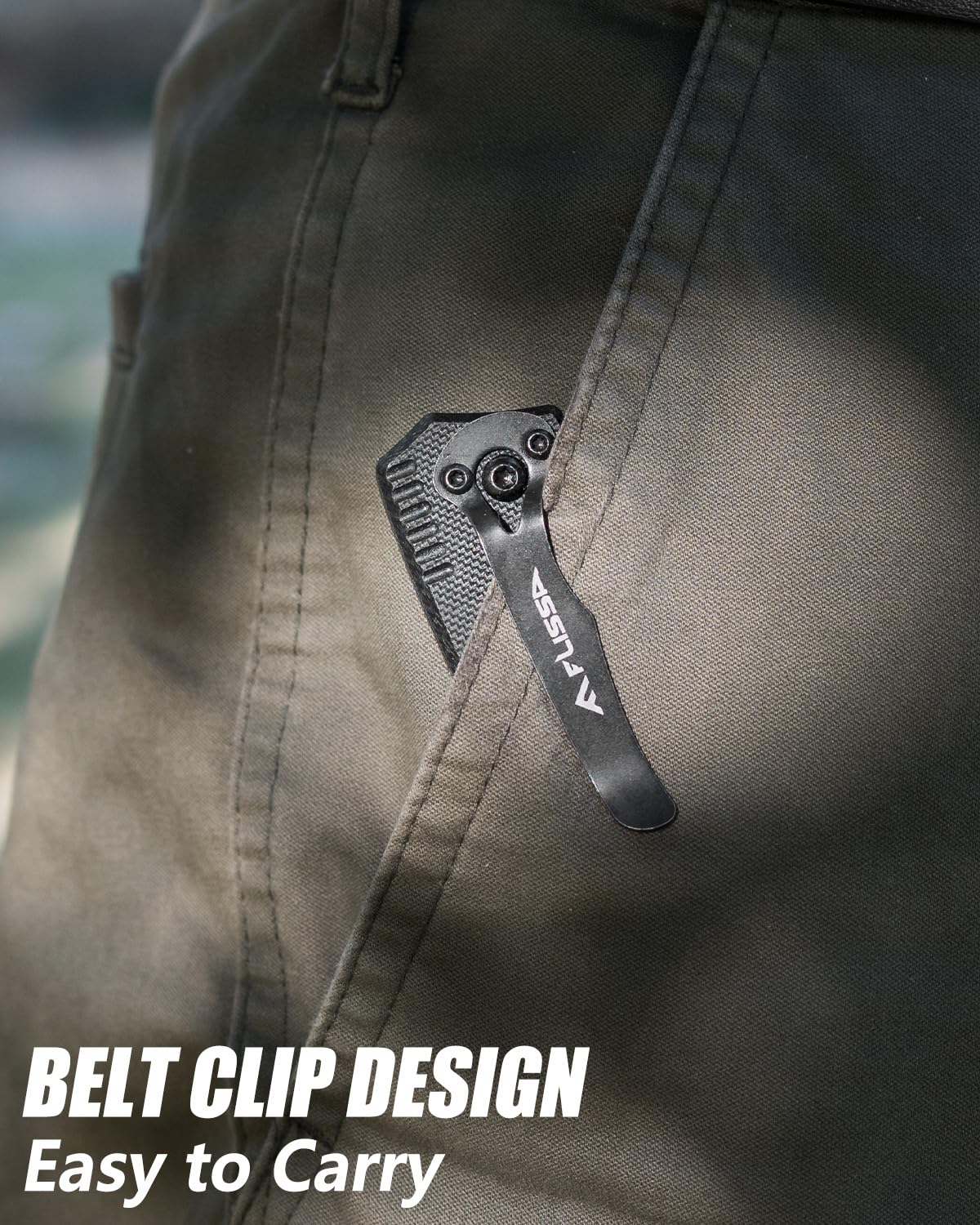 - Stylish Stonewash Handle with Belt Clip: The G10 handle provides a comfortable grip and balance, and the ergonomic handle grooves are non-slip for use. The handle comes with a belt clip for easy daily storage and use.