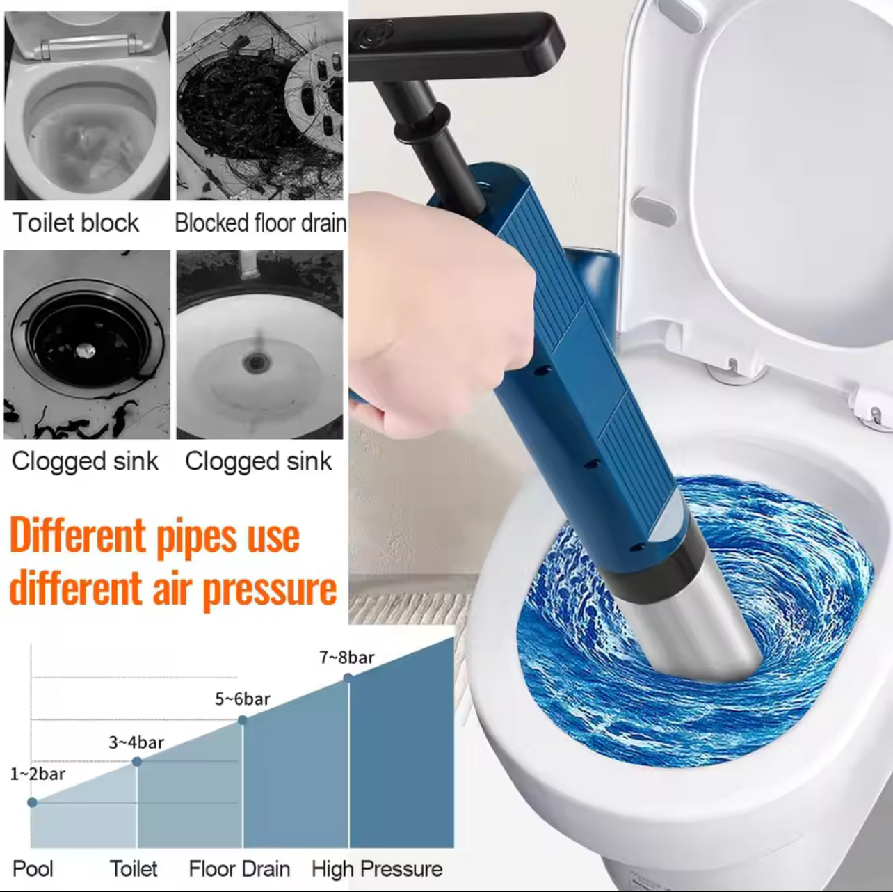 • HIGH-PRESSURE INFLATION: Equipped with a powerful inflation mechanism, it can generate high-pressure air by pulling on the handle repeatedly to effectively break down and flush out even the most stubborn blockages in pipes and drains.