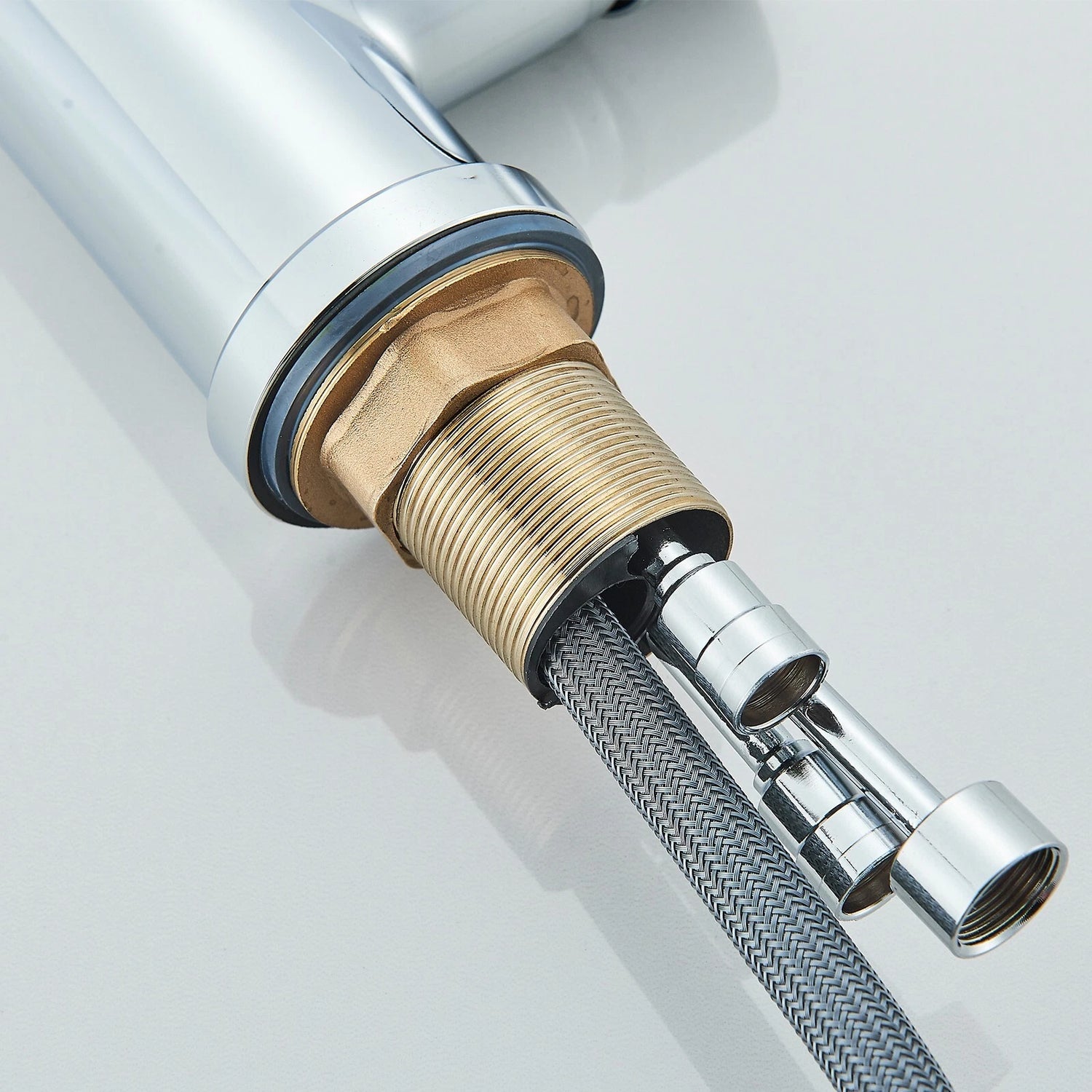 Note: This is a pull-out kitchen tap, the gravity ball needs to be installed correctly and should be installed on the side of the outlet pipe.