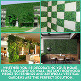 These beautiful evergreen hedge panels are perfect for indoors or outdoors, decorating your home, fence, balcony or wall, instant boxwood hedge screenings and artificial vertical gardens, also perfect for offices, or shops to add some greenery indoors.
