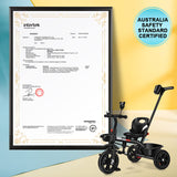 Safety Standard Certified. Ideal for Children from 18 months to 6 years old. This Tricycle converts easily from a Toddler Pusher to Independent Rider in 2 Stages.