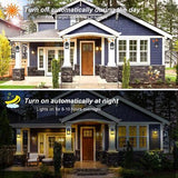 Waterproof & Durable: The solar porch lantern is made of high-quality ABS and PC material, waterproof IP65 rating, with strong weather resistance and can withstand severe weather such as heat, heavy rain, storm and snow. Therefore, they can work safely and orderly outdoors all year round, suit for front door, courtyard, garden, patio, porche, and yard.