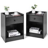 2Pcs Bedside Table, 2-Tier Nightstand Side End Table, w/ 1 Storage Drawer & 1 Open Compartment, Industrial & Modern, Wooden Sofa Side Table File Cabinet, for Home Office Living Room, Bedroom, Study Room, Black/White/Rustic Brown (Black)