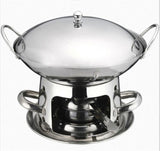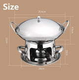 Elegant design and durable frame, mirror finish, comes with water pan, food pan, lid, durable frame and alcohol furnace.
