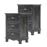 2x LaBella Bedside Table 3 Drawer Side Storage Cabinet Bedroom VINTAGE BLACK