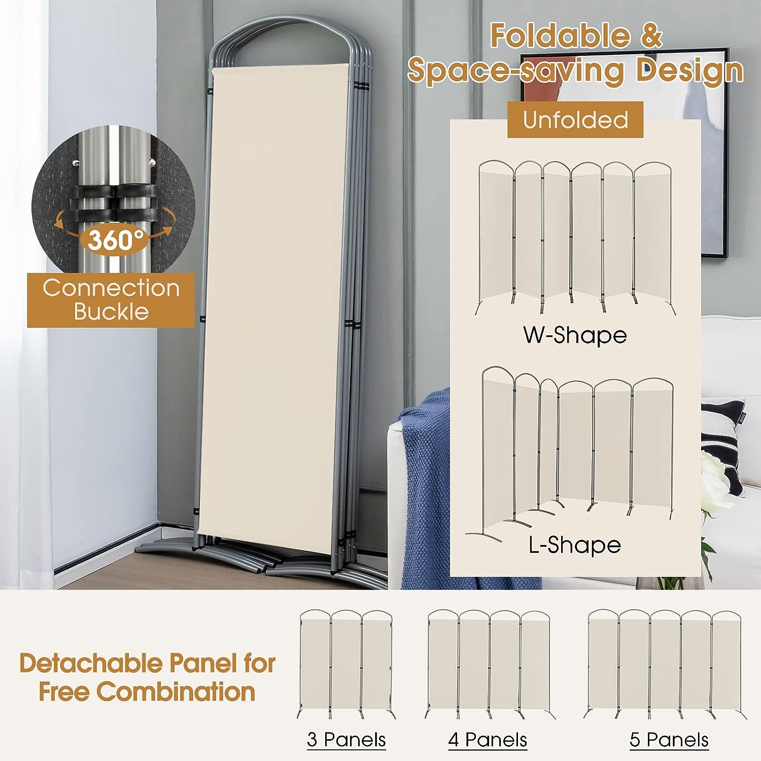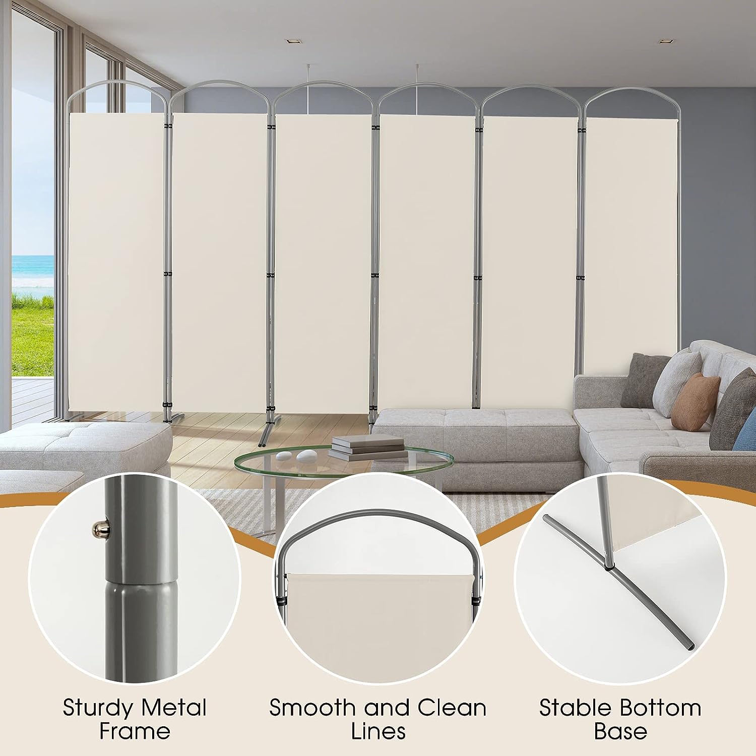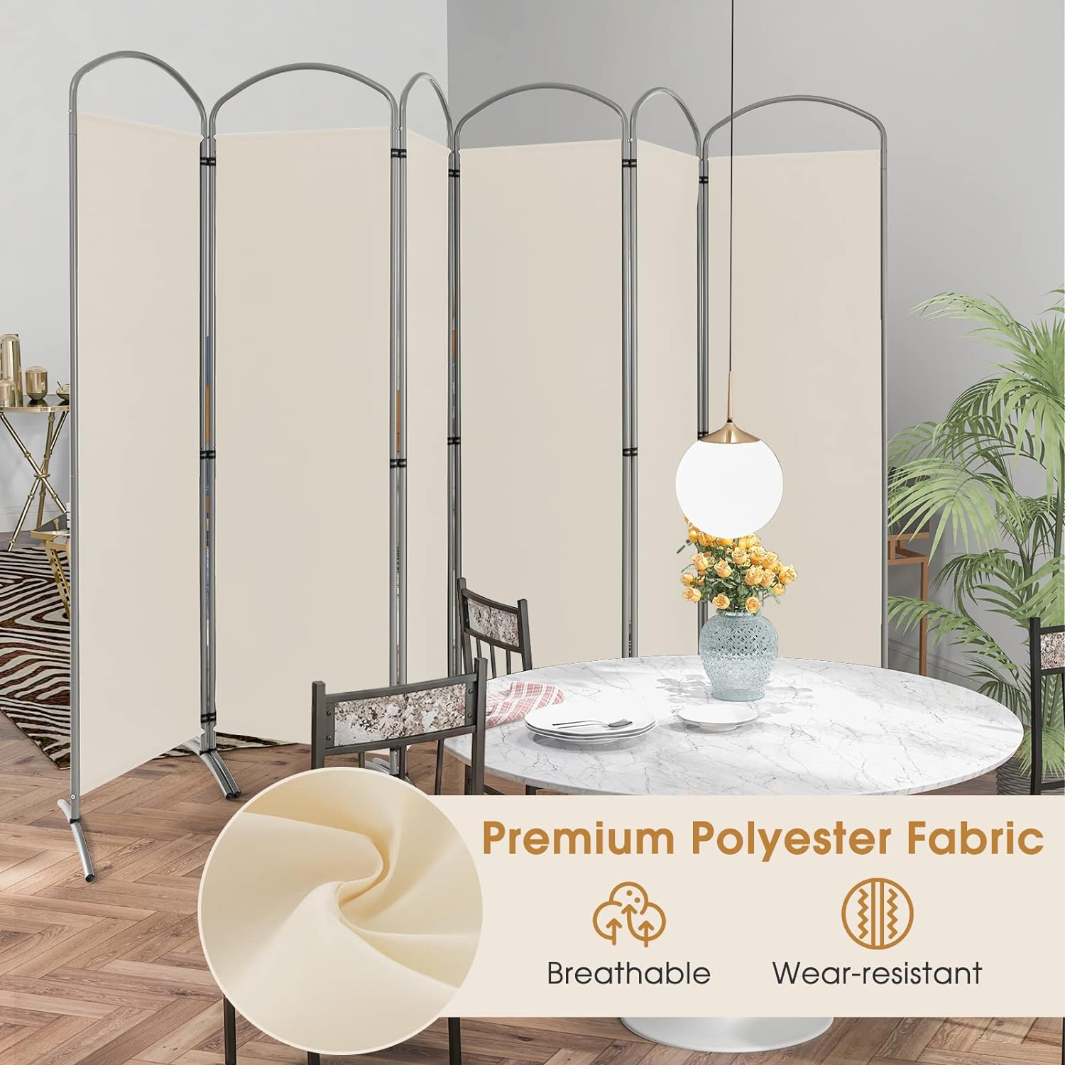 6-Panel Folding Room Divider, Privacy Screen, Portable Polyester Fabric Wall Divider and Separator, Freestanding Privacy Protection for Living Room, Bedroom, Office