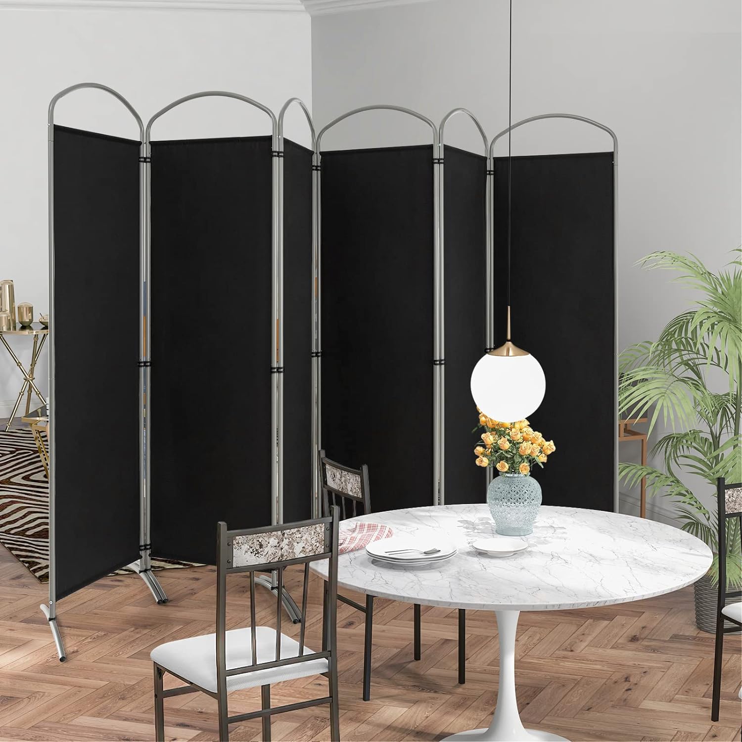 The 6-panel room divider is perfectly designed to separate the room into different areas and create a private space. Made of premium polyester fabric and supported by a metal frame, the privacy screen is characterized by great durability and wear resistance. Considering convenient use, the panel can be easily turned in either direction or folded up flexibly according to your needs. In addition, its elegant design will perfectly match well with other furniture and add aesthetic beauty to your living surroundings, whether in a home, office, hotel, school, and hospital.