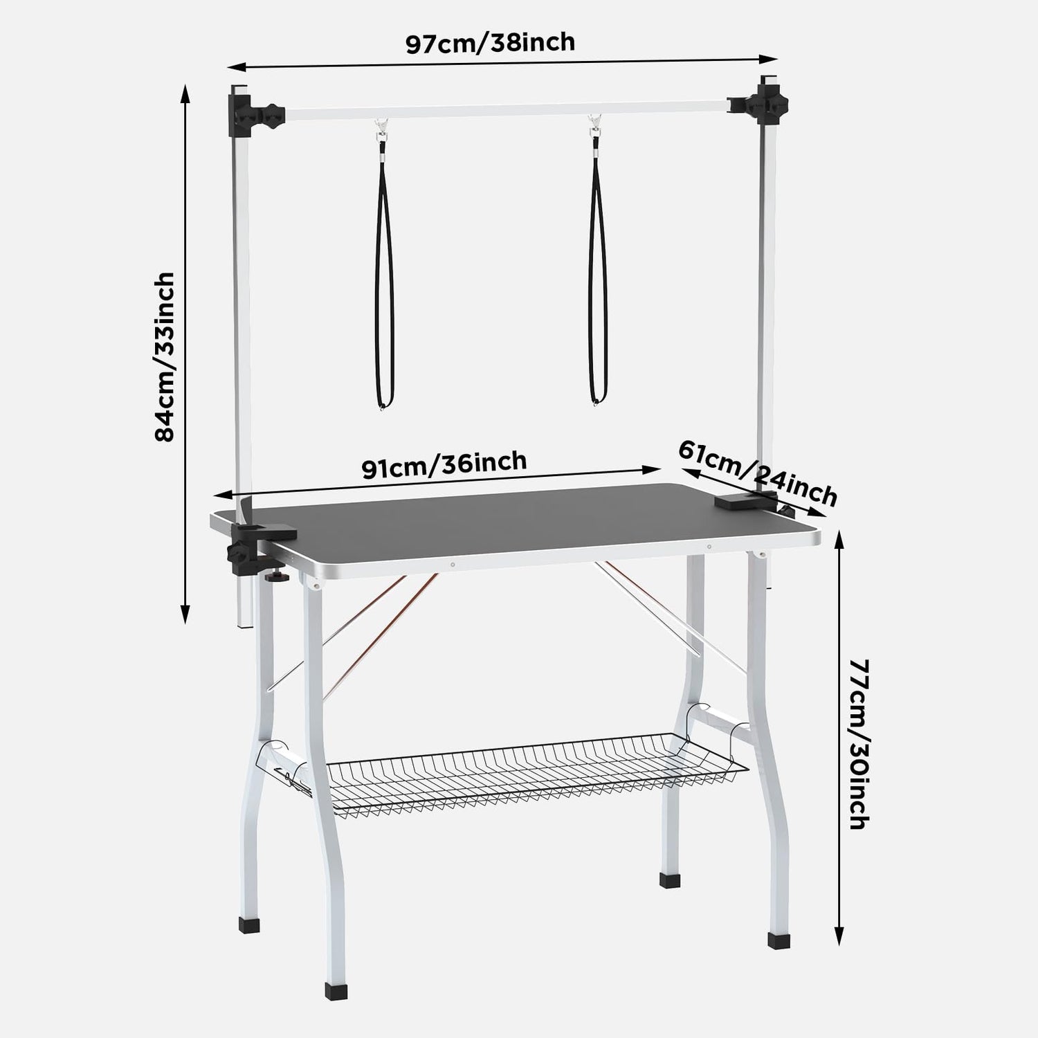 Pet Dog Grooming Table, Folding Height Adjustable Arm Table 91cm Double Pole Anti Slip Rubber W/Basket