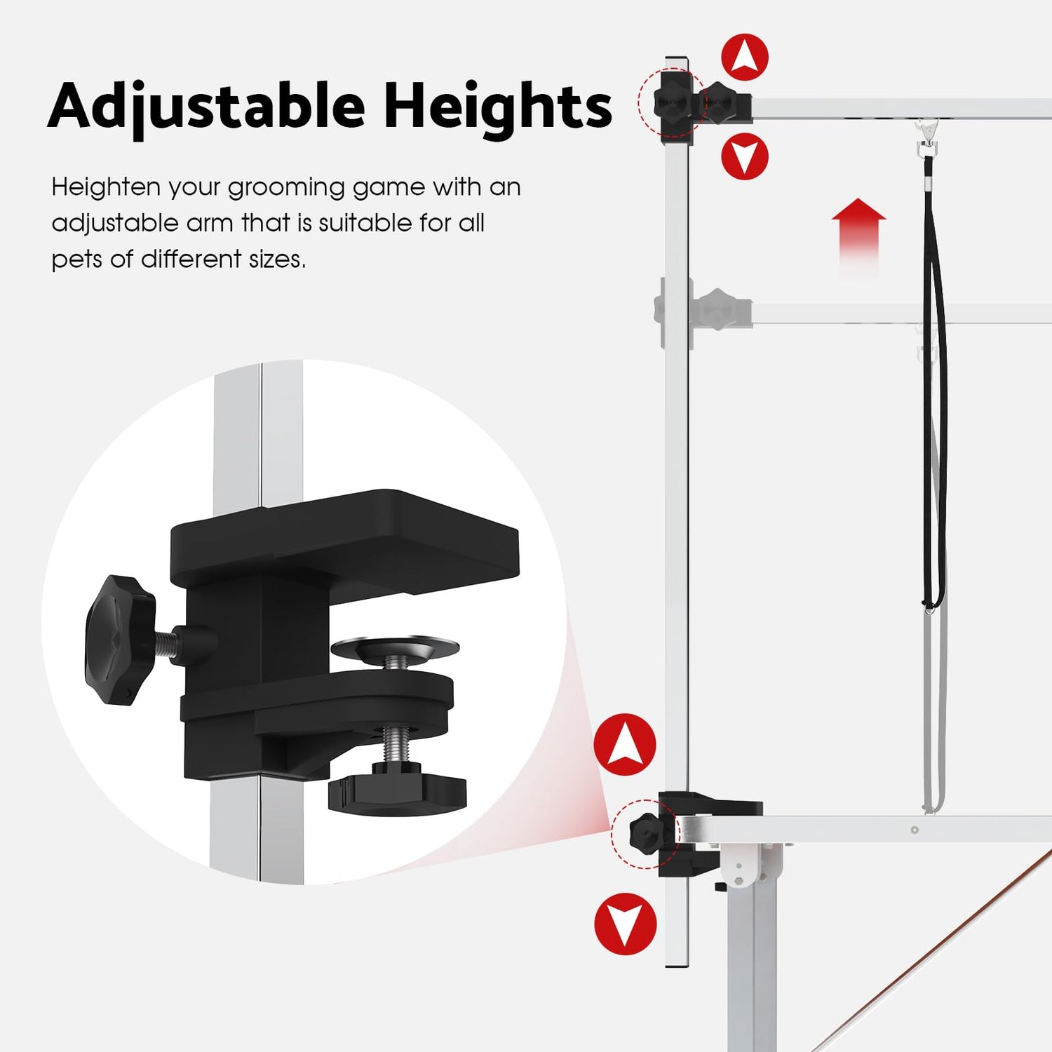 - Adjustable Height&Foldable: Heighten your grooming game with an adjustable arm that is suitable for all pets of different sizes. Made to be versatile, it's grooming arms and legs are foldable for easy assembly and storage